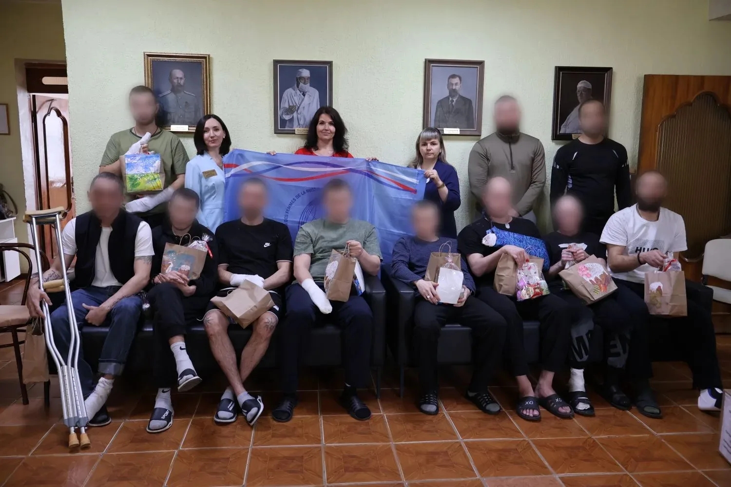 Настоятель храма Веры, Надежды, Любови и матери их Софии иерей Алексий освятил угощения. Батюшка пожелал ребятам помощи Божией, боевого настроения и скорейшего выздоровления. Гости поблагодарили военнослужащих за мужество, проявленное на передовой, и пожелали всем скорейшей победы.