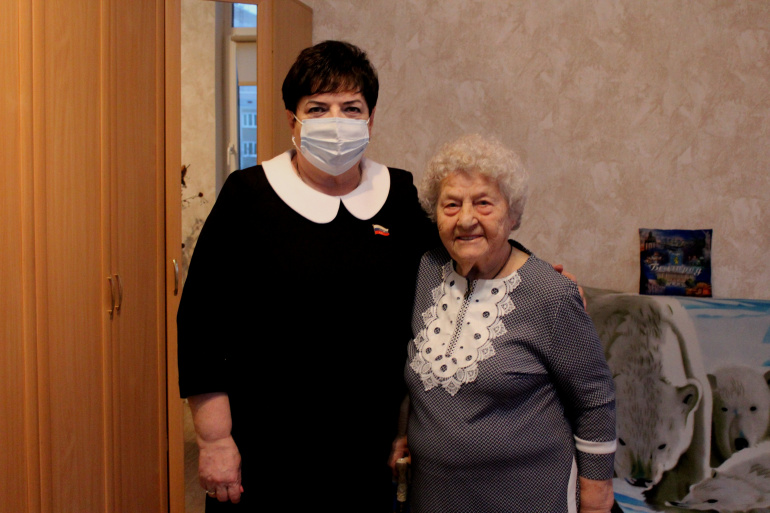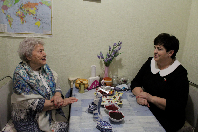 28 декабря, накануне Нового года, в рамках бессрочной акции Мы вместе, члены Белгородского регионального отделения СЖР посетили Марию Денисовну Колтакову, 98-летнего ветерана Великой Отечественной войны, всей своей жизнью доказавшую верность присяге и Отчеству. Председатель регионального отделения Союза женщин России Л.П. Киреева вручила почетному члену Белгородского регионального отделения ценные подарки от Союза женщин России и регионального отделения.