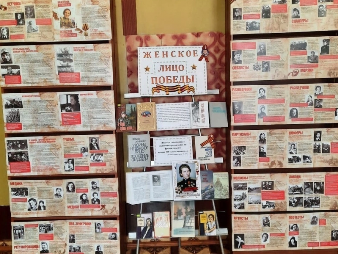 В рамках Всероссийской акции Союза Женщин России «Женское лицо Победы» Спас-Деменским женсоветом Калужского регионального отделения СЖР и библиотечными работниками организована выставка в центральной районной библиотеке. Она посвящена памяти и славе героических защитниц Отечества.