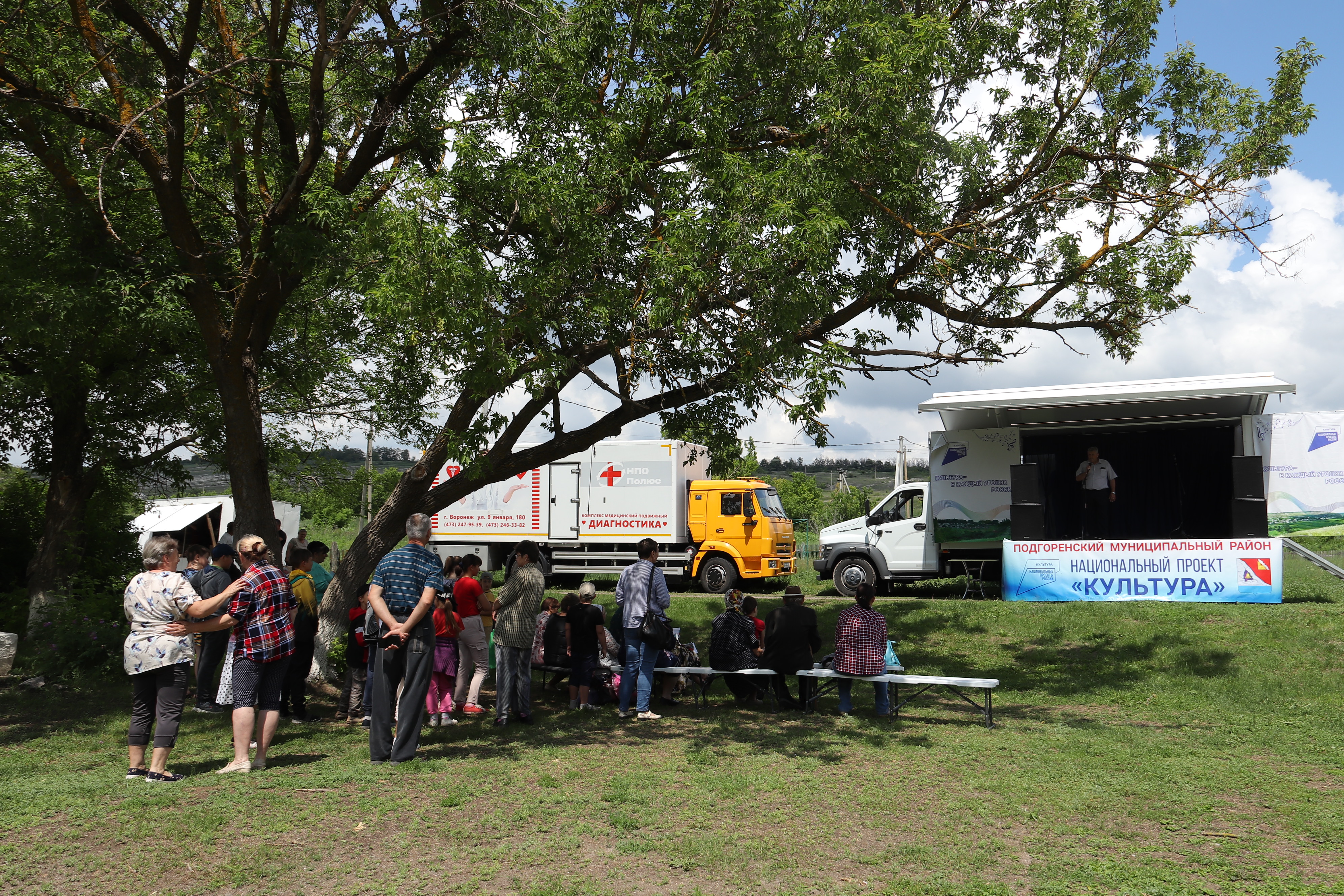 С июля 2021 г. еженедельно осуществляются комплексные выезды в сельские поселения под названием «Поезд здоровья», который состоит из трех служб – автоклуба, мобильного ФАПа и автолавки. На сегодняшний день очень актуальным является вопрос сохранения здоровья граждан, и теперь выездные мероприятия проводятся не только с целью организации культурного досуга населения, но и для предупреждения распространения коронавирусной инфекции (COVID-19). Эту идею поддержали и члены Подгоренского районного женсовета во главе с председателем В.В. Семерниной – они принимают активное участие в выездах.
