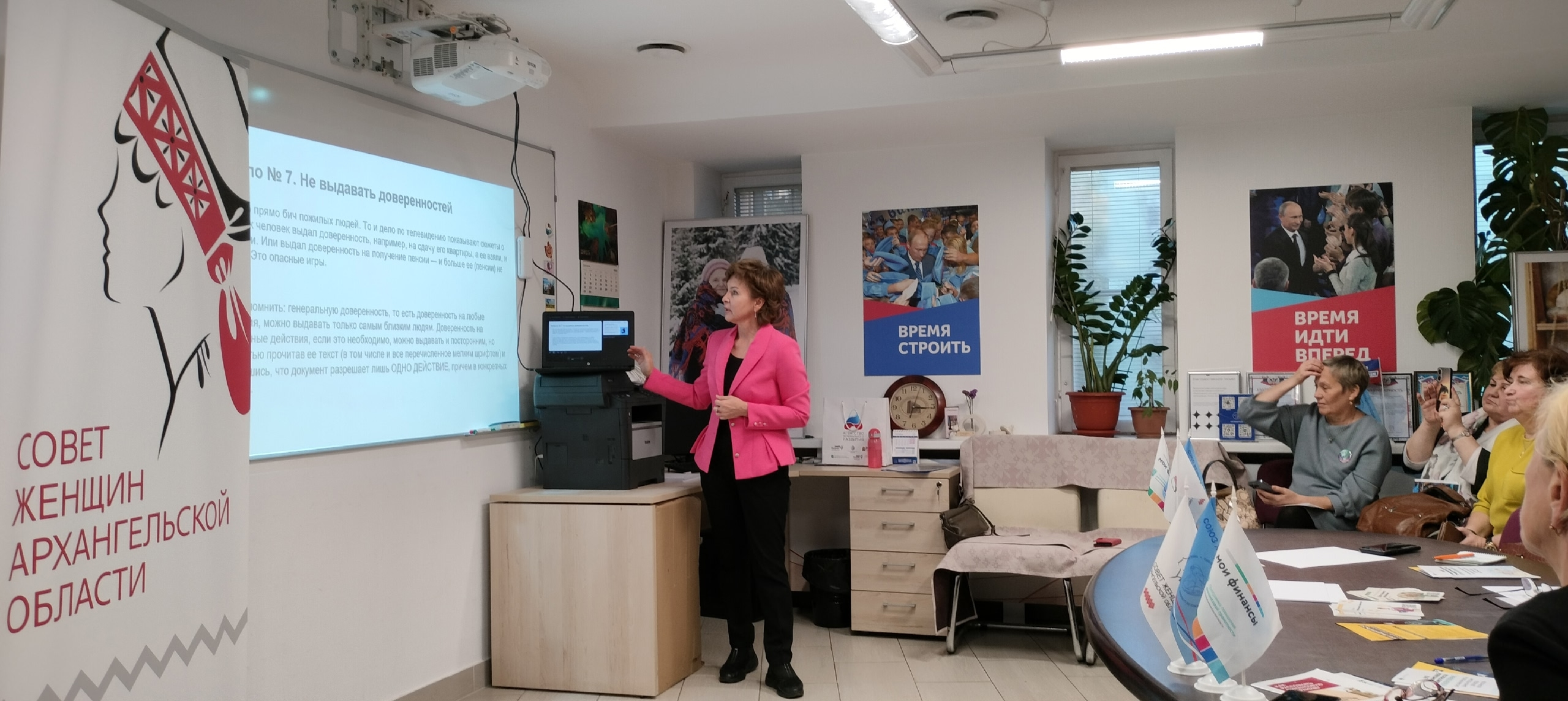22 октября для активистов женсоветов Северного, Ломоносовского и Октябрьского округов столицы Поморья на площадке Архангельского регионального отделения Союза женщин России прошёл семинар «Финансовое мошенничество: как не стать жертвой».