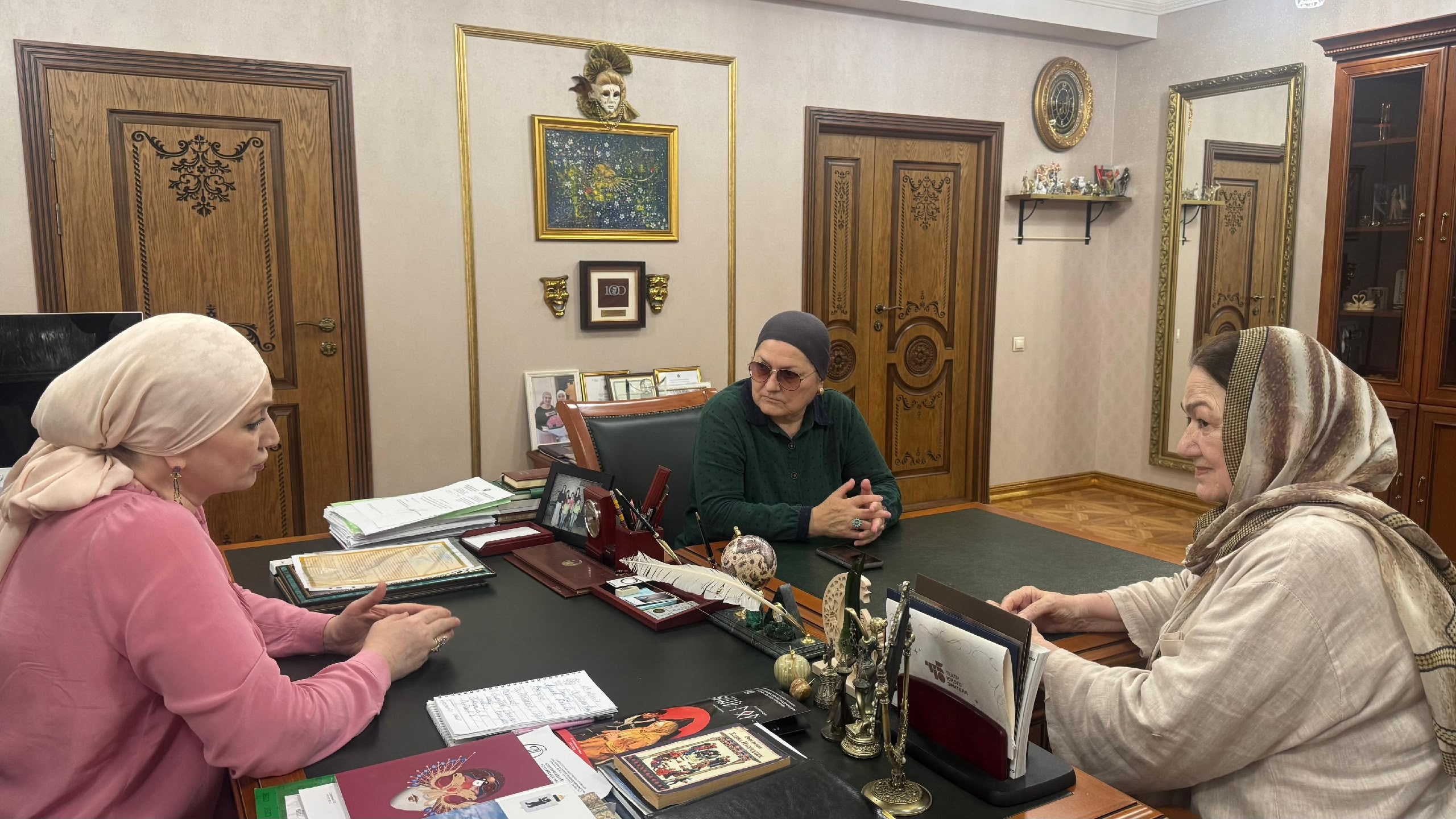 В ходе беседы Хава Лолиевна рассказала о своих творческих замыслах, направленных на дальнейшее развитие театра. Стороны также обсудили и согласовали планы по организации совместных культурных мероприятий, направленных на поддержку и популяризацию искусства в регионе.