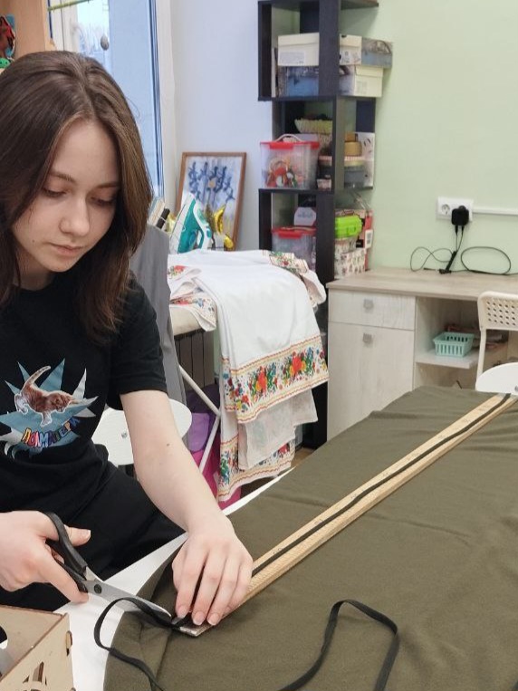 А в Доме детского творчества городка вновь кипит работа. Здесь по инициативе активистки местного женсовета Ольги Евстигнеевой (ей принадлежит идея, она же предоставила материалы и лекала) организован пошив балаклав и снудов для наших земляков участников СВО.