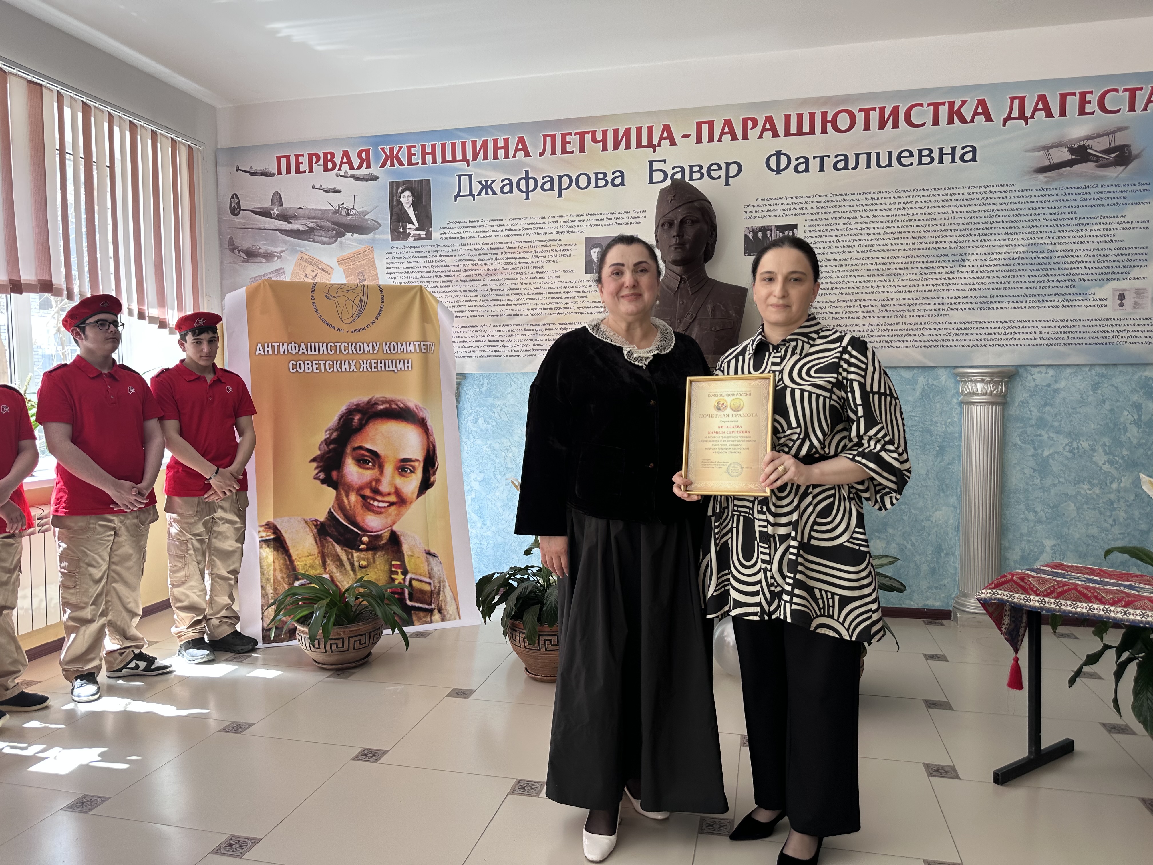 Помимо рассказа о Валентине Гризодубовой, учащиеся представили биографию гордости Дагестана — Бавер Фаталиевны Джафаровой — первой женщины‑лётчицы-парашютистки Дагестана, участницы Великой Отечественной войны.