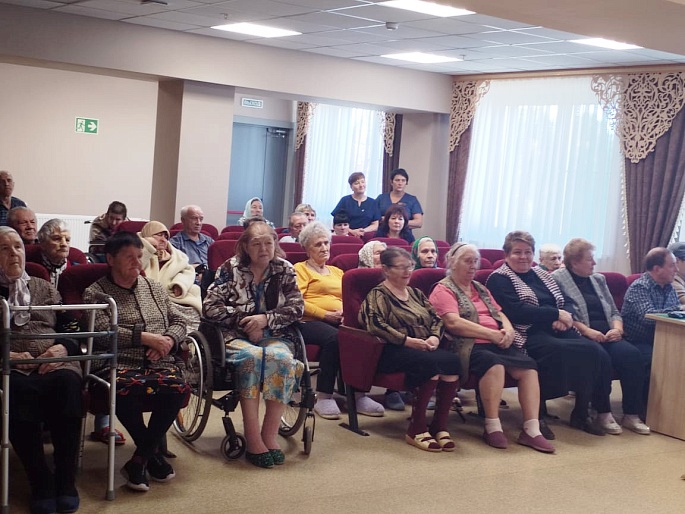 Открытие мероприятия состоялось в актовом зале местного Дома-интерната. Теплые поздравления и подарки ветераны труда и дети войны получили от главы района, местного женсовета под руководством председателя Зеленеевой Татьяны Ивановны, от Районного совета депутатов, органов социальной защиты населения, ветеранской организации, отделения Всероссийского общества слепых.