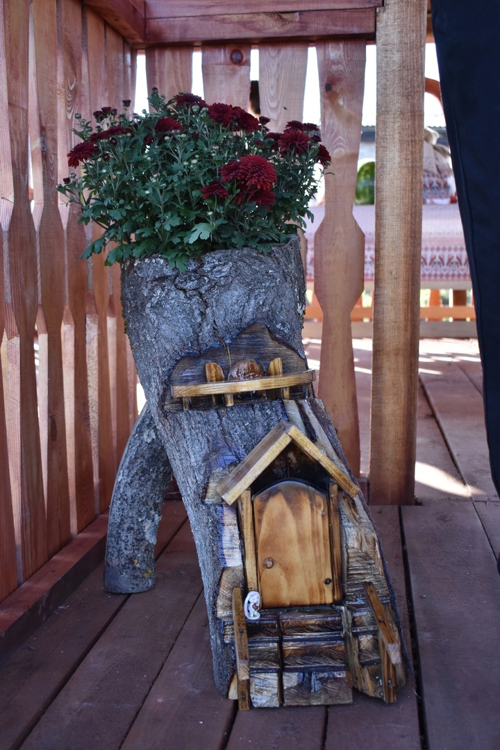 Большая резная беседка, костровая зона с подвесными качелями, декоративные колодцы с волшебной щукой и множество цветов - это место дает возможность погрузиться в сказочную атмосферу вдалеке от городской суеты.