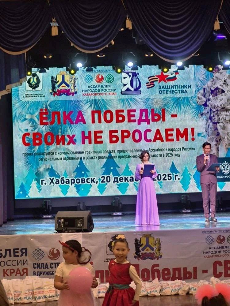 Члены Хабаровского краевого отделения Союза женщин России приняли участие в благотворительной акции "Ёлка победы - СВОих не бросаем". Гостями праздника, организованного активистами регионального отделения Ассамблеи народов России при активном содействии правительства Хабаровского края, администрации Хабаровска, фонда "Защитники Отечества" и Хабаровского государственного института культуры, стали дети участников специальной военной операции.