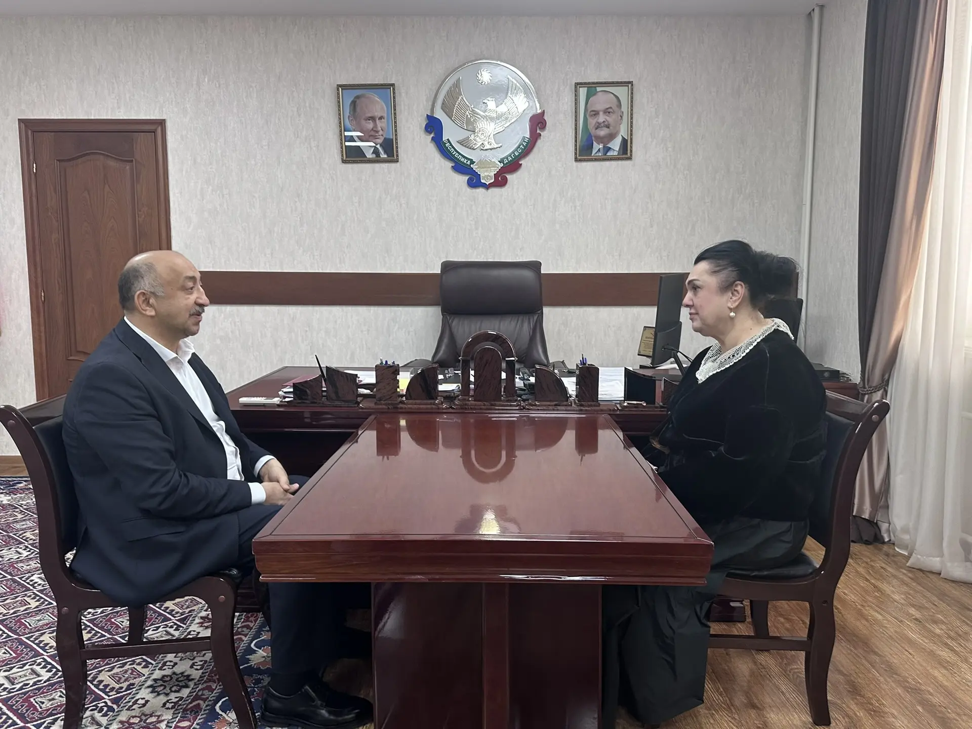 Председателя Союза женщин Дагестан Хасайбат Валиевна Валиева провела рабочую встречу с Главой администрации МР «Кумторкалинский район» Айнутдином Магомедкамиловичем Зиявутдиновым.