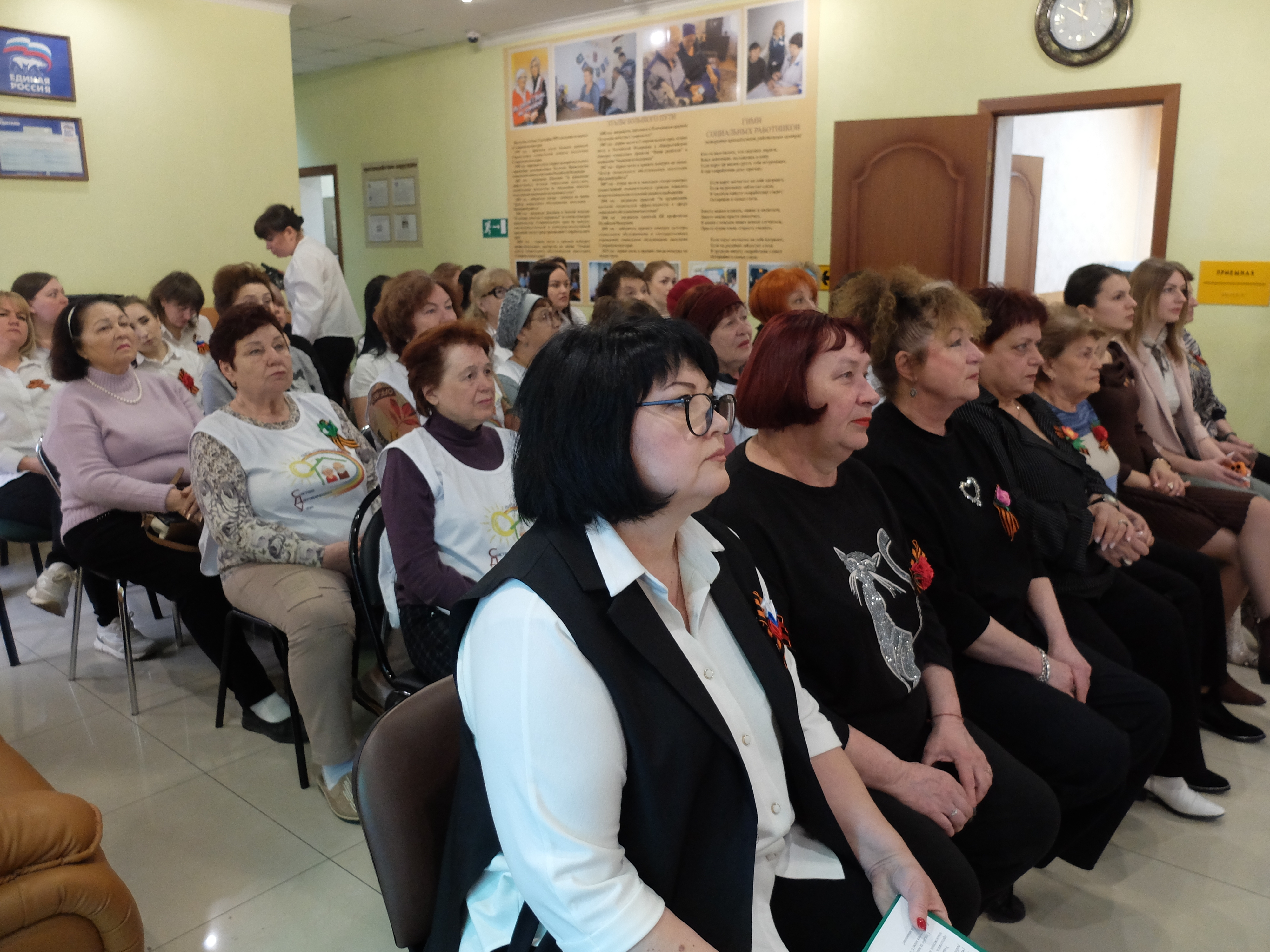 Елена Аштименко, председатель женсовета Центра соцзащиты населения, показала два видео о работе активисток. А ещё рассказала о недавней отправке гуманитарной помощи: женщины испекли пасхальные куличи и пирожки для участников СВО. Она предложила зачитывать обращение Союза женщин России на всех мероприятиях округа, чтобы о нём узнали не только женщины, но и все жители.