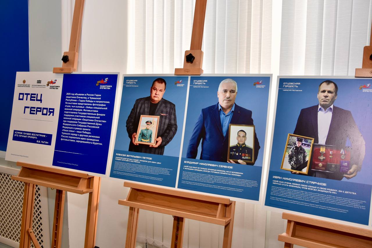 В экспозиции представлены портреты 41 мужчины, которые воспитали настоящих патриотов, проявивших исключительную храбрость и самоотверженность в ходе специальной военной операции. Среди них, мужчины из Чувашии, отцы Героев России: Алексей Витальевич Петров, Владимир Николаевич Семёнов и Иван Николаевич Старчков.