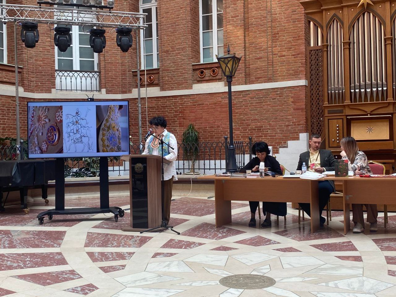Римма Анваровна, известный исследователь традиционной культуры тюркских народов, руководитель творческой лаборатории «Кокон», выступила с докладом «Специфика происхождения татарского ювелирного украшения хаситэ как предмета искусства».