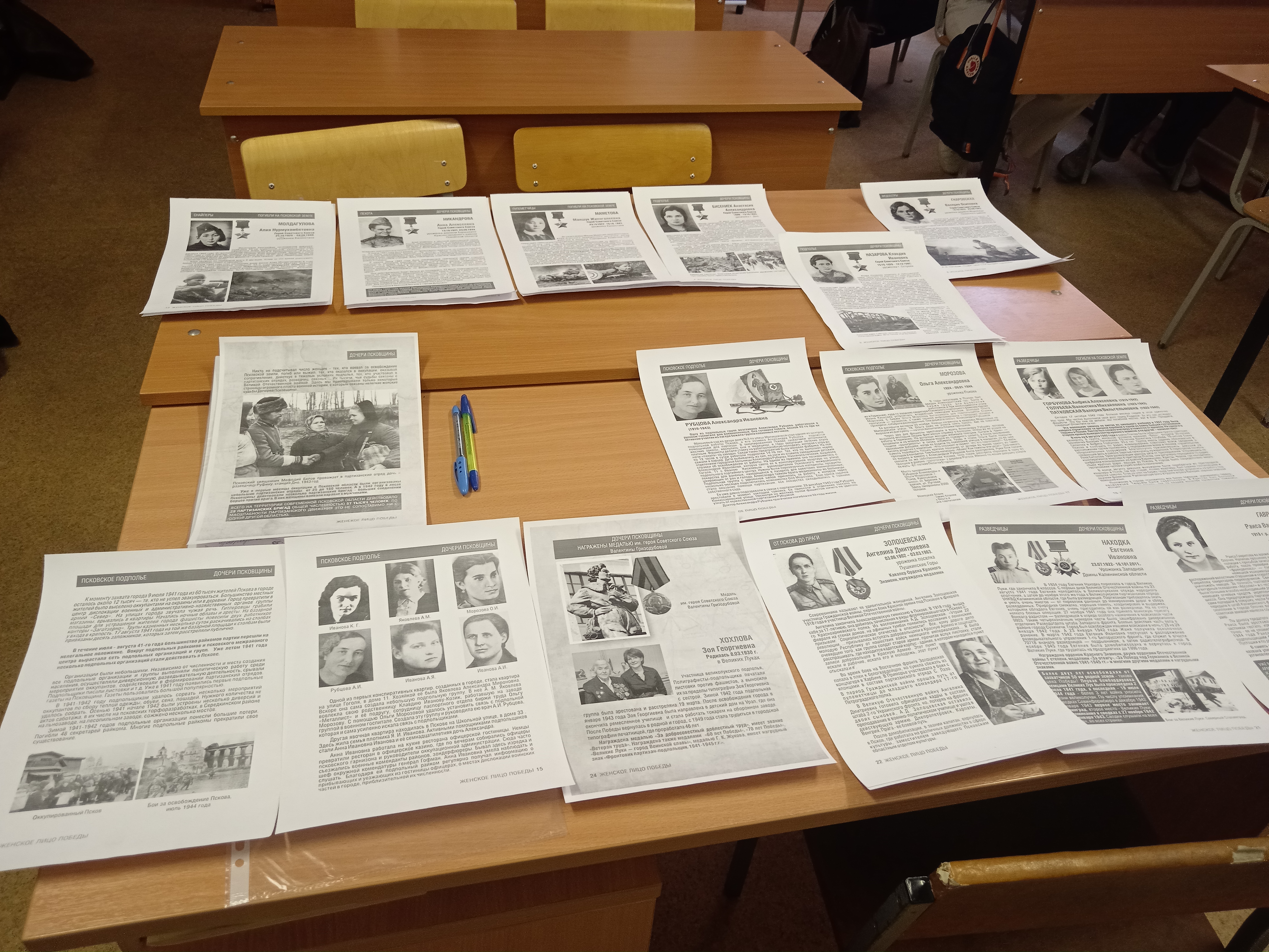 Студенты разных групп специальностей "Социально-культурная деятельность", "Народное художественное творчество" и "Дизайн" подготовили презентации и рассказали о легендарных женщинах - псковских разведчицах, подпольщицах, героях СССР; женщинах, погибших в боях и сражавшихся в тылу. Свои выступления студенты подготовили по материалам брошюры "Дочери Псковщины", изданной при поддержке Союза женщин России.