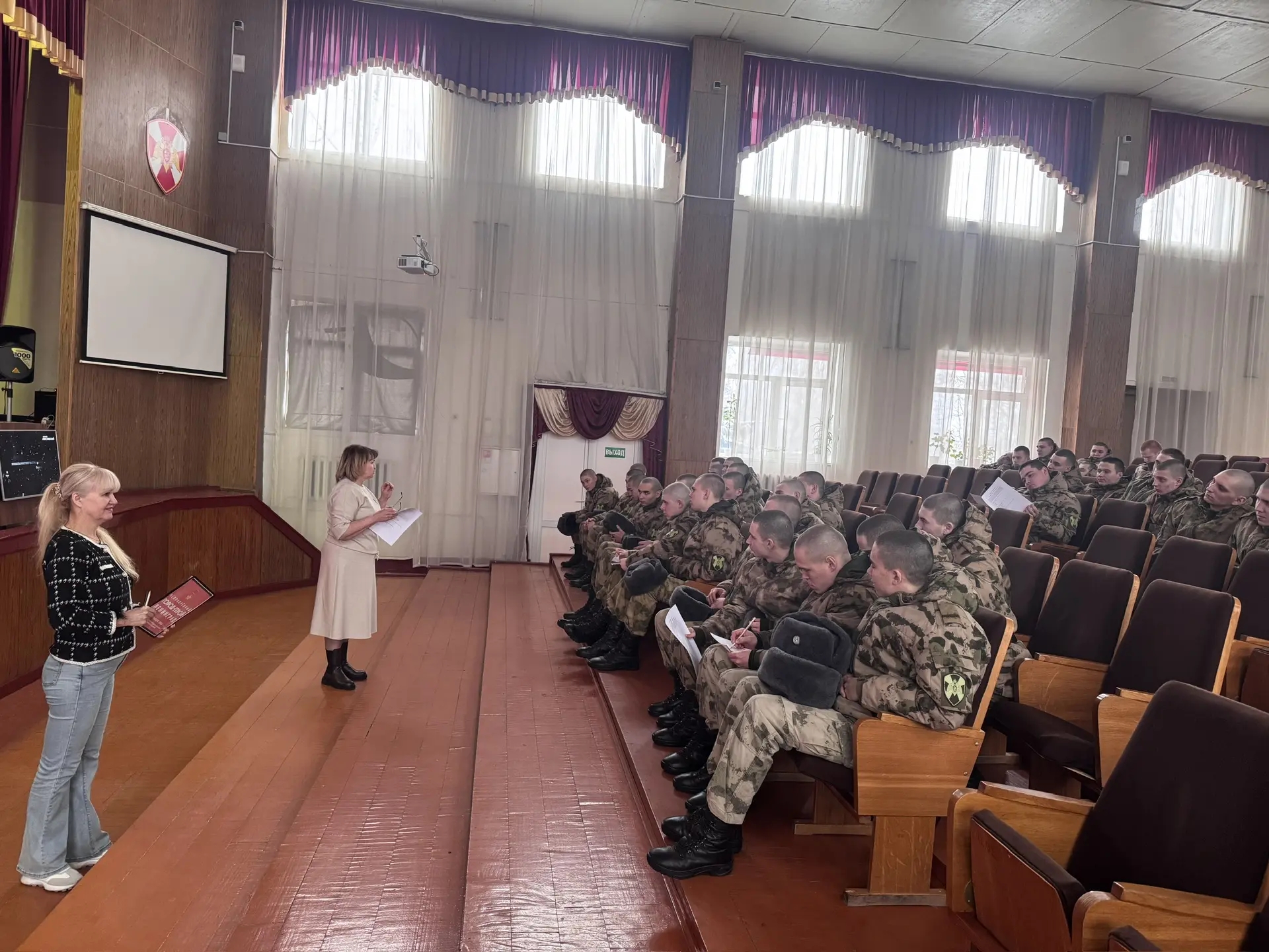 Активистки показали бойцам тематический документальный фильм, а по итогам просмотра ребята приняли участие в викторине. Разделившись на две команды, солдаты продемонстрировали хорошие знания истории Великой Отечественной войны, а в завершение мероприятия получили благодарственные письма от организаторов.