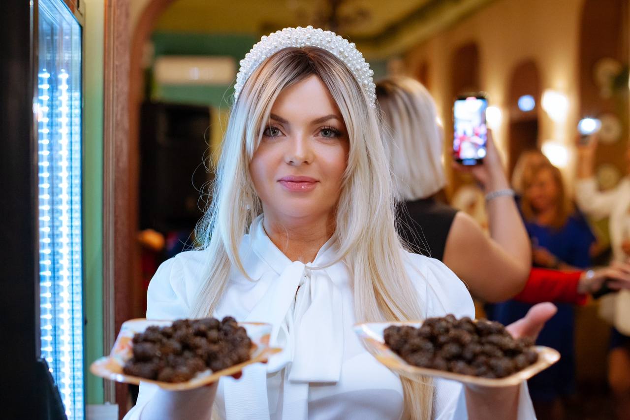 На торжественном ужине наша подруга угощала послов гостеприимства уникальными десертами томской экофабрики «Территория тайги»: цукатами из сосновой шишки, созданными по запатентованной технологии. А для жителей Смоленска провела открытую дегустацию шоколадных конфет и мармелада из сосновой шишки.