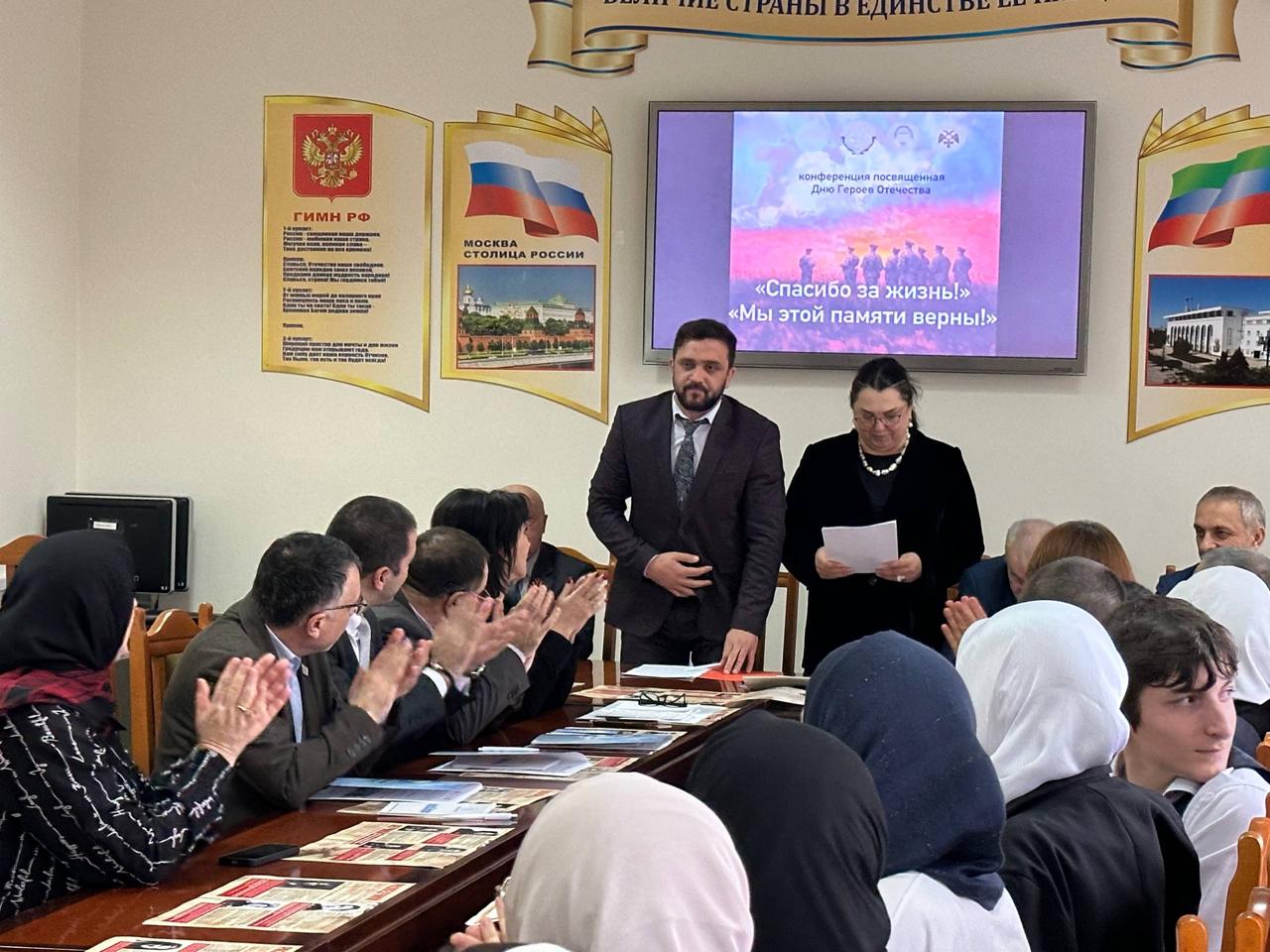 В Махачкале прошла патриотическая конференция «Спасибо за жизнь! Мы этой памяти верны!» В Дагестанском государственном педагогическом университете на мероприятии, посвященном Дню Героев Отечества, присутствовали представители общественных организаций, научного сообщества, студенты вузов и школ республики. Организаторы конференции - Союз женщин Дагестана при поддержке Министерства по национальной политике и делам религий РД.