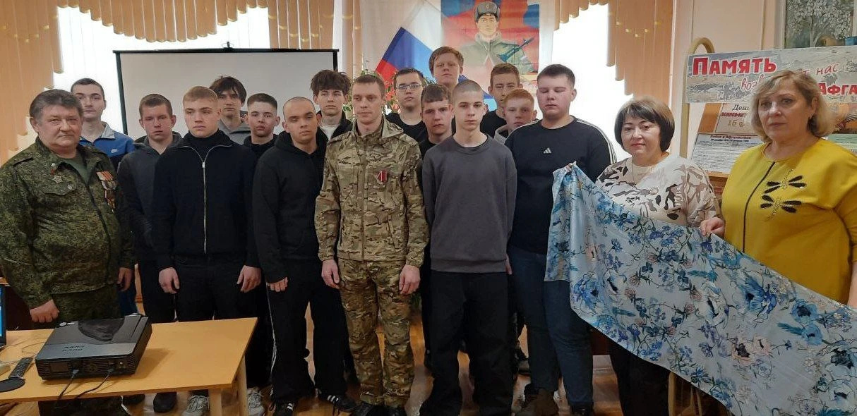 Директор МБУК «Тербунская центральная библиотечная система», член женсовета Тербунского округа Ирина Николаевна Карпова организовала урок памяти «У времени есть своя память». На встречу со студентами Аграрно-технологического техникума, посвященную Дню памяти о россиянах, исполнявших служебный долг за пределами Отечества, пришли ветеран боевых действий в Афганистане, председатель организации ТРВП ООВ «Общевойсковое братство» Черников Владимир Алексеевич и ветеран специальной военной операции, кавалер ордена Мужества Аносов Сергей Владимирович.
