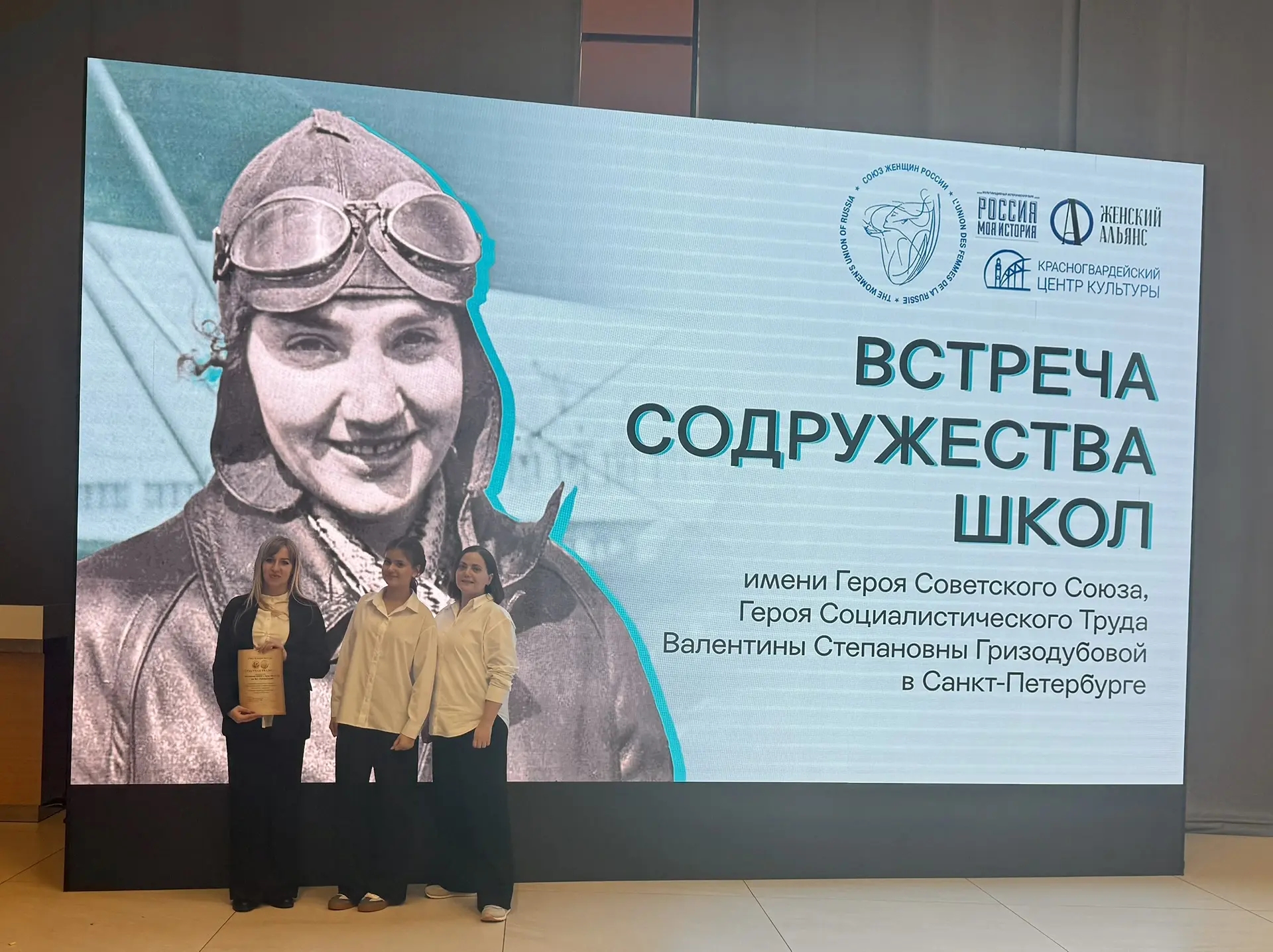 По инициативе Тульского регионального отделения Союза женщин России делегация Центра образования № 42 имени Героя Советского Союза Валентины Степановны Гризодубовой приняла участие в масштабной международной встрече Содружества школ, носящих имя легендарной летчицы. Мероприятие, организованное Санкт-Петербургским отделением Союза женщин России, прошло в северной столице в мультимедийном историческом парке «Россия – моя история».