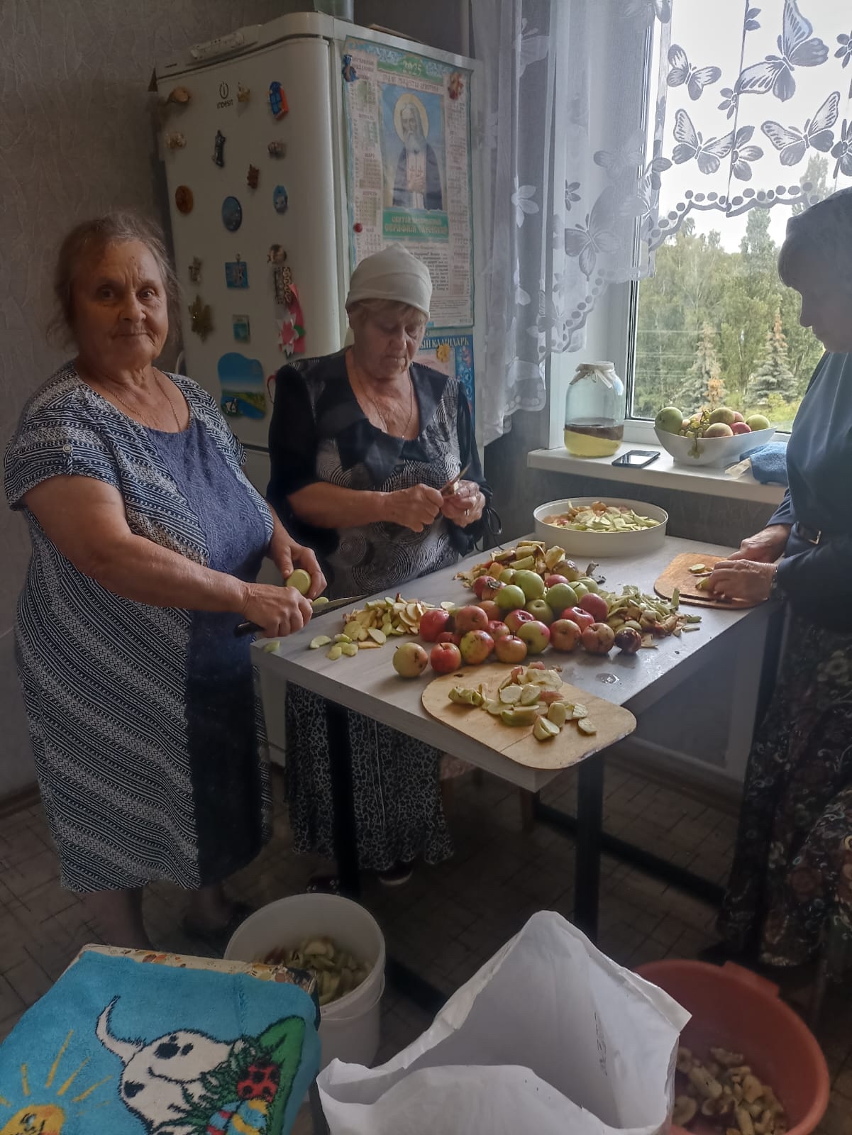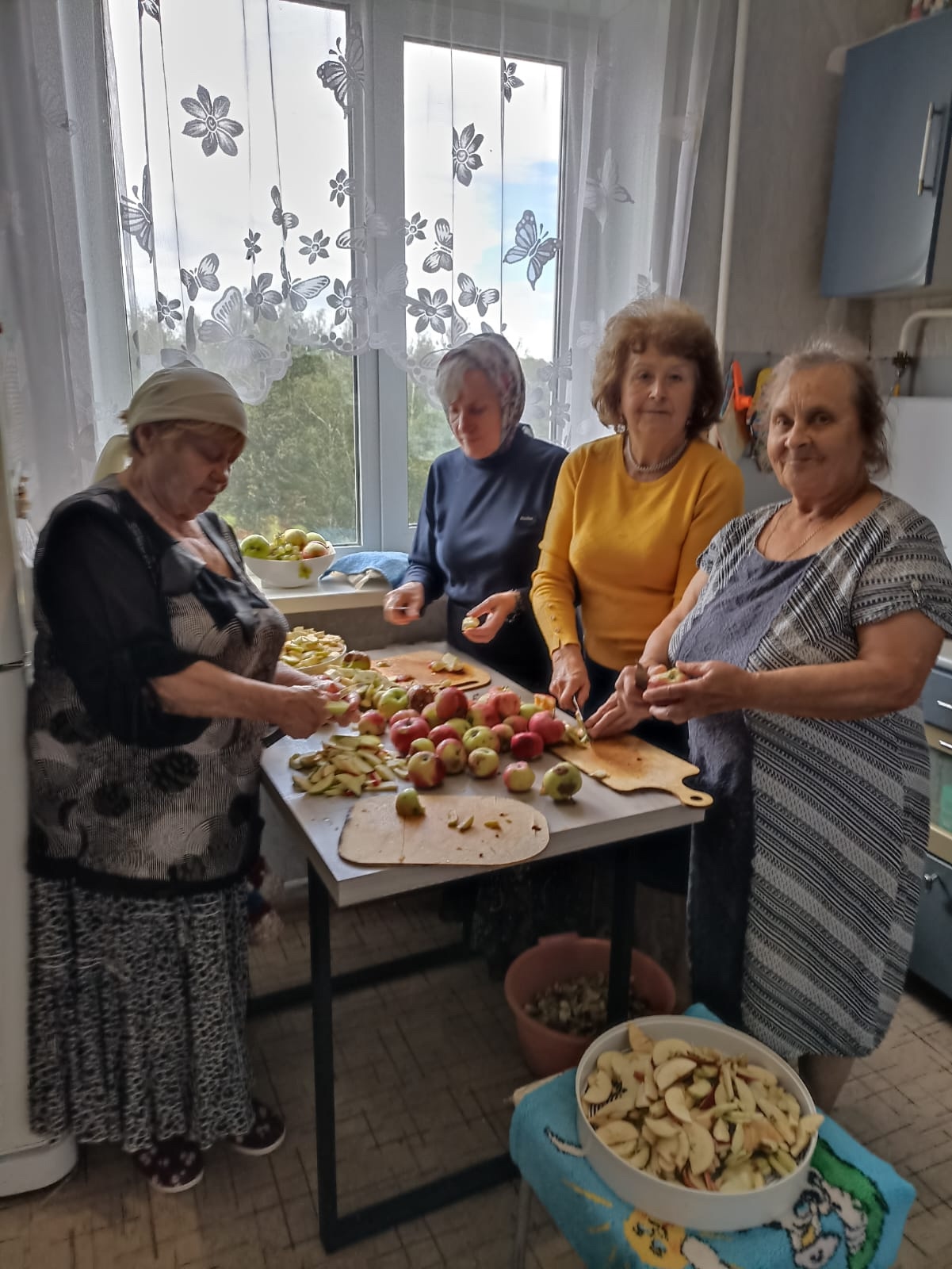 Неравнодушные подруги встречаются вечерами для того, чтобы подготовить фрукты и овощи для сушки. Из этих продуктов в дальнейшем они изготовят сухие супы и ингредиенты для компота.