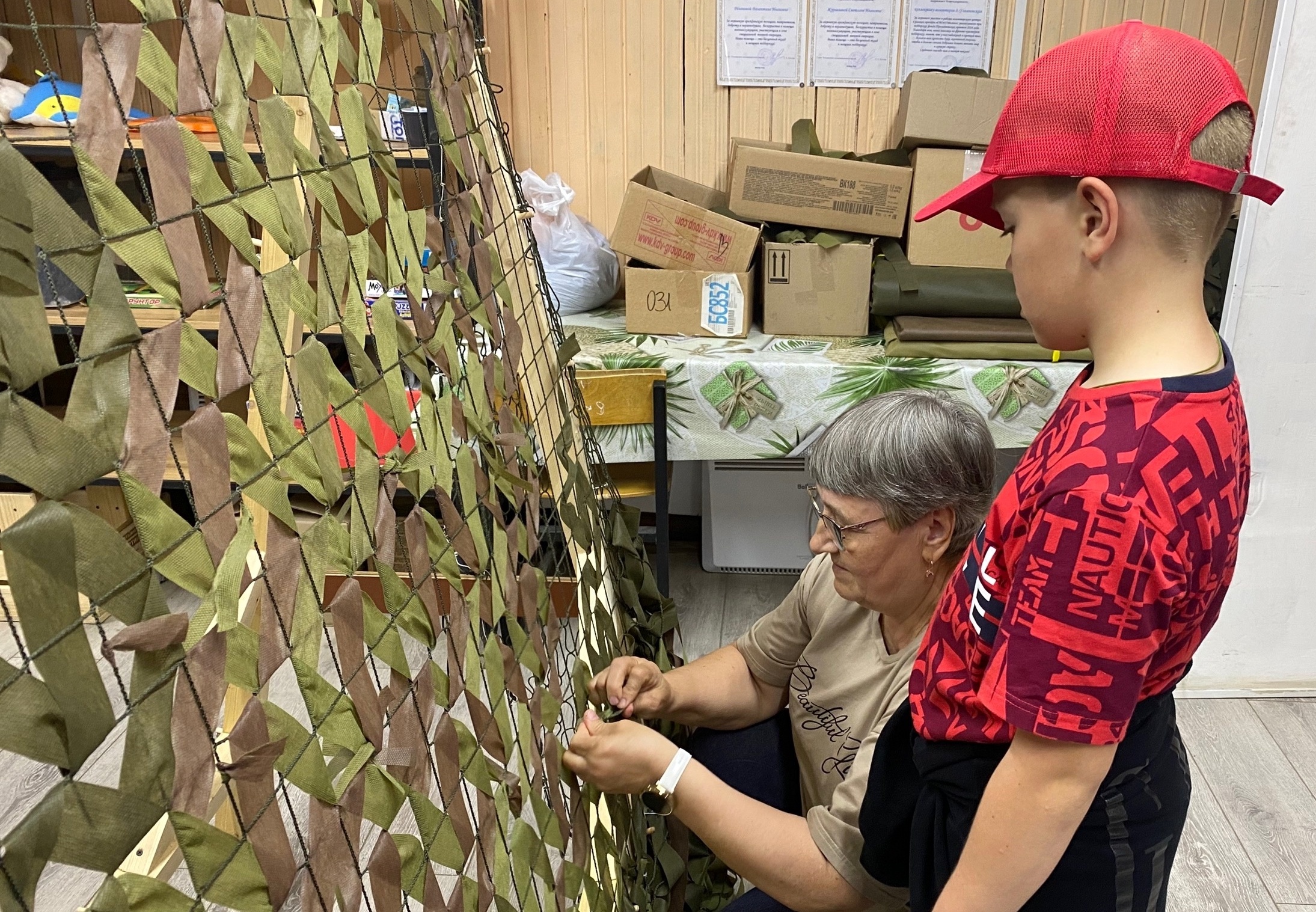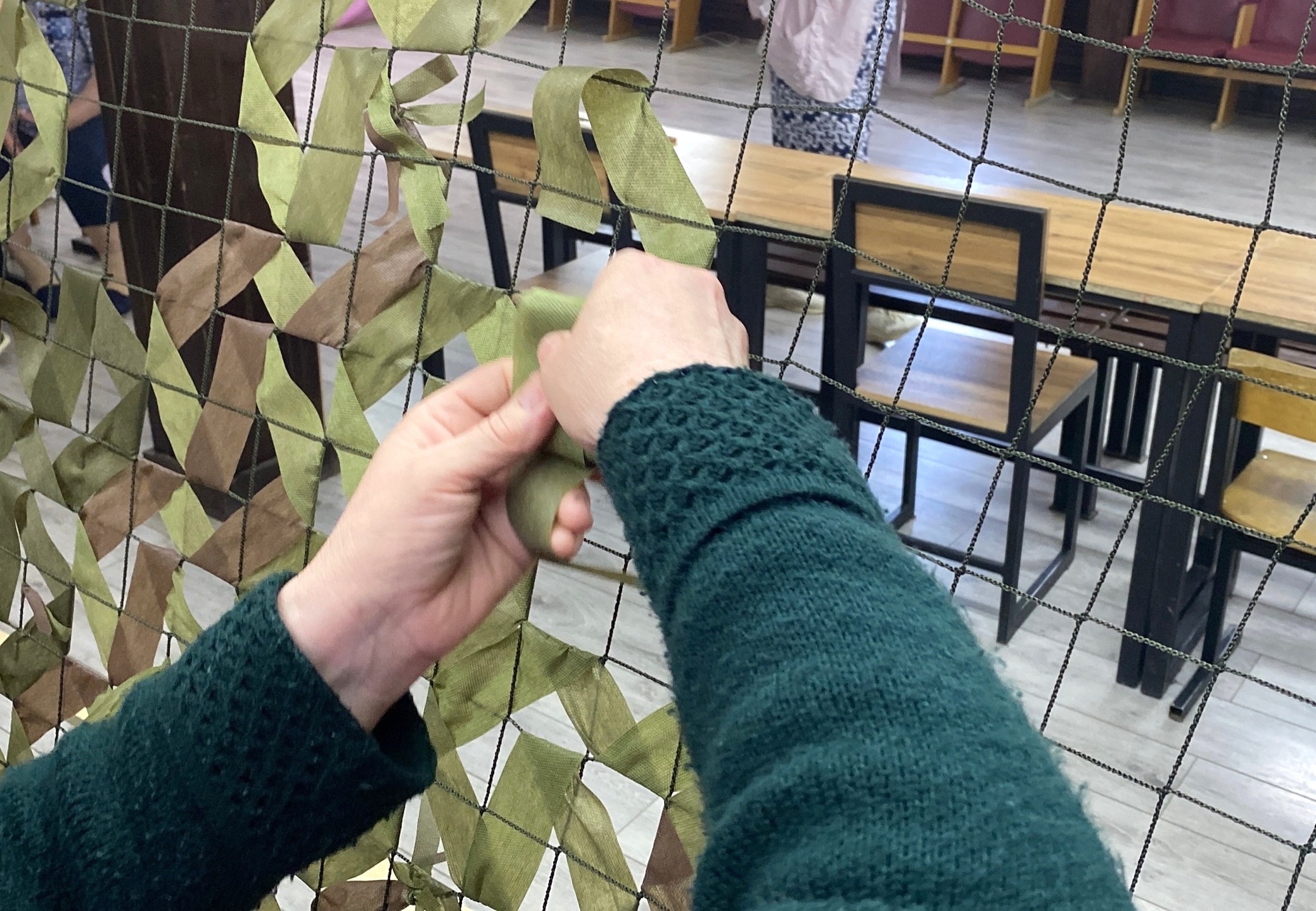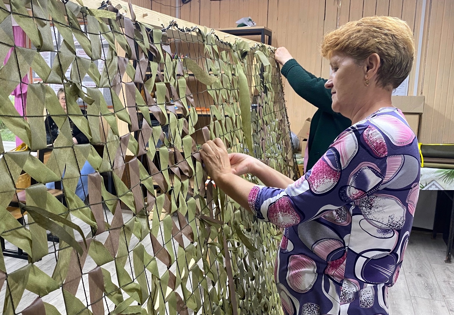 Людмила Гайдукова провела мастер-класс по разным техникам плетения маскировочных сетей, познакомила с основными требованиями к готовым изделиям. А затем женщины все вместе сплели первое защитное покрывало.
