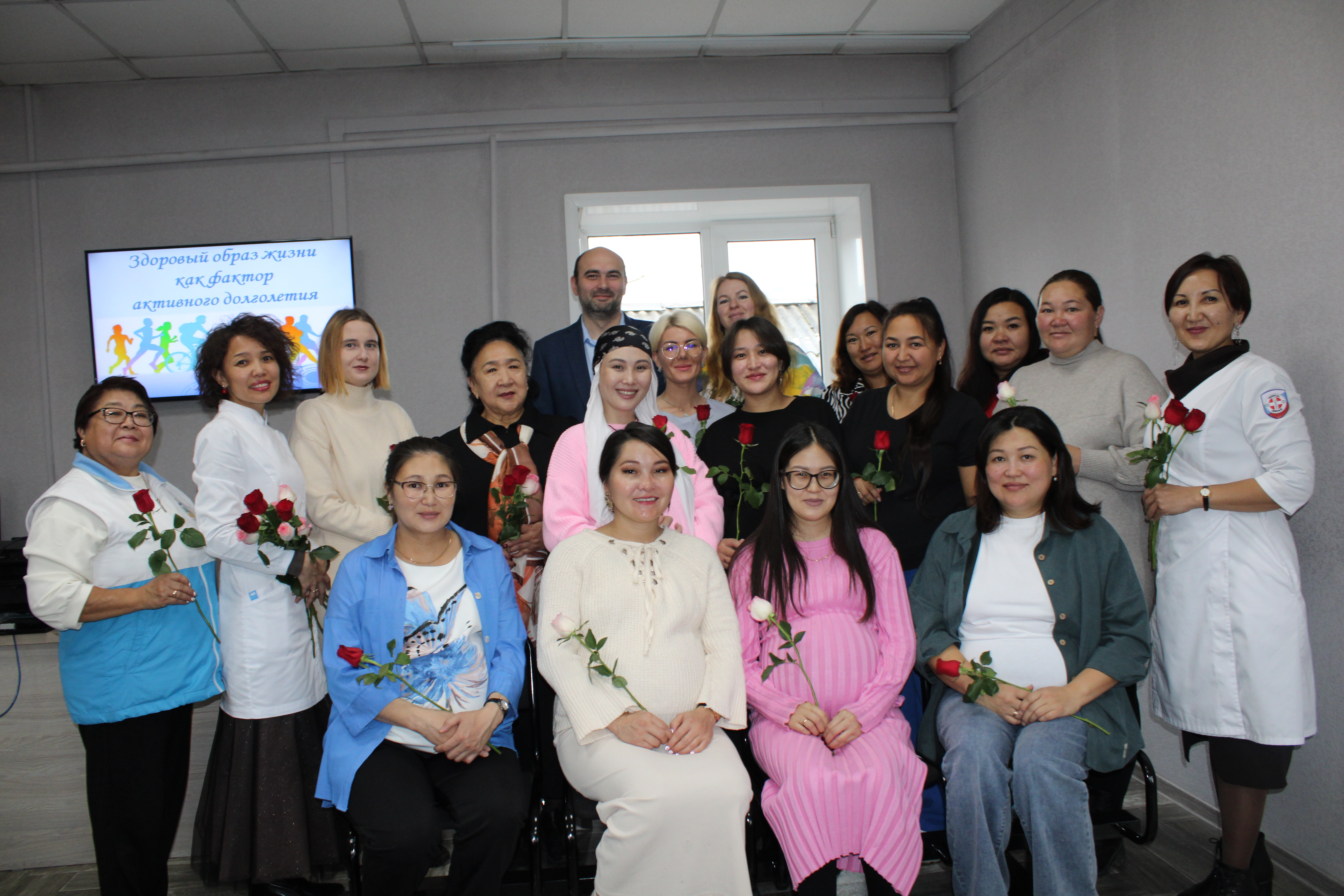 Утром возле женской консультации будущих мам встречали с цветами и ленточками. Голубую ленточку вручали, если женщина ждет рождения мальчика, розовую – если девочку. Затем состоялась теплая встреча в конференц-зале Перинатального центра.