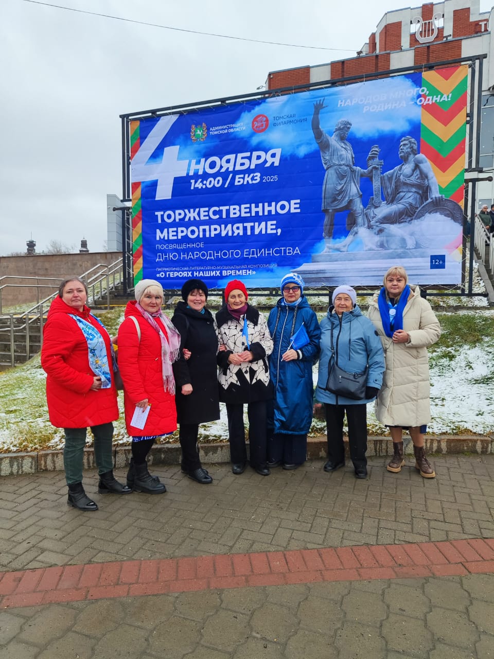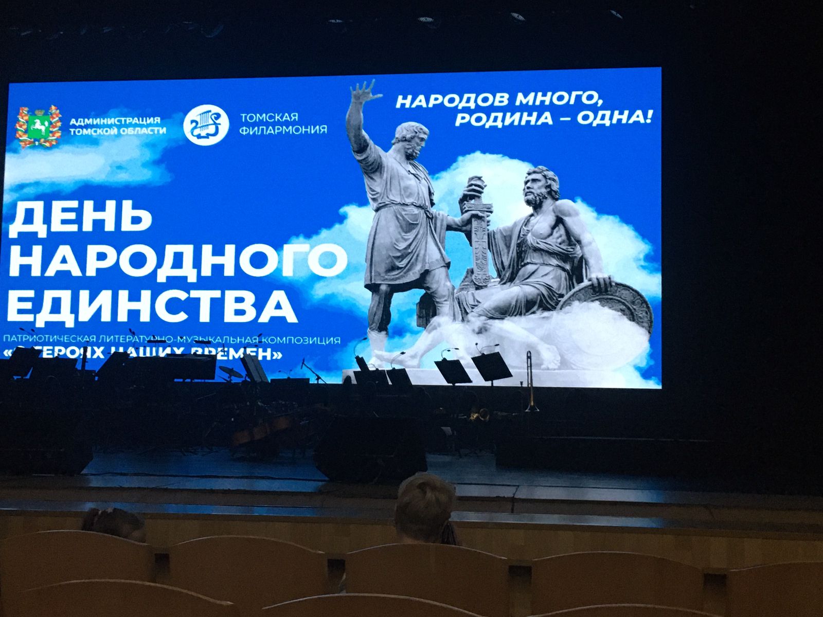 4 ноября по случаю Дня народного единства представительницы Томского регионального отделения Союза женщин России были приглашены в Большой концертный зал Томской филармонии на торжественное мероприятие с литературно-музыкальной композицией «О героях наших времён». В составе группы женщин были и члены семей участников СВО. Одна из жён воина, Татьяна, приняла участие в постановке и в сопровождении симфонического оркестра исполнила авторскую песню, посвящённую мужу.