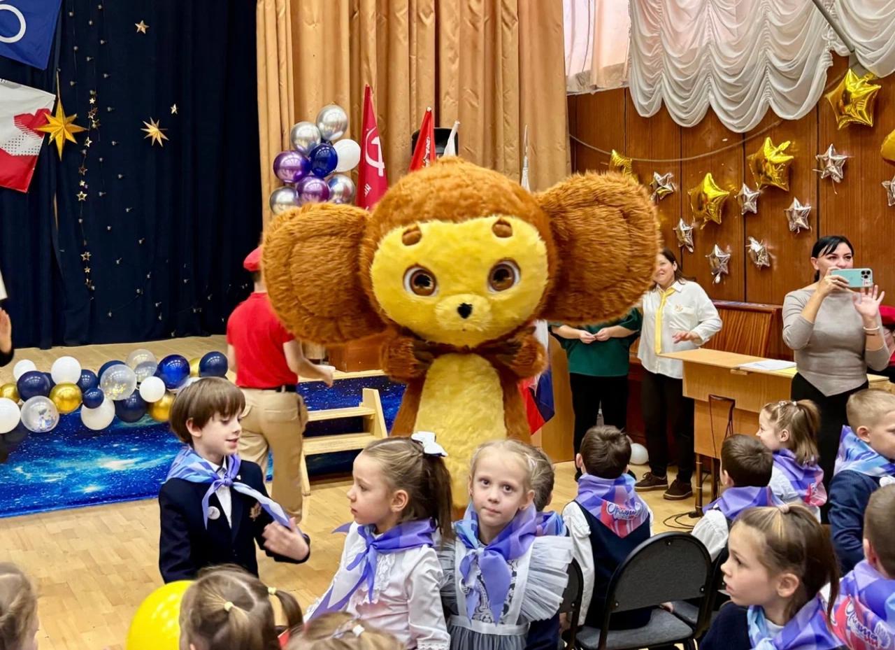 С волнением и гордостью ребята произнесли клятву, после чего им были вручены значки «Орлят России». Однако главным сюрпризом для детей стал визит любимого героя – Чебурашки. Ростовая кукла, пришедшая в гости от женсовета, дарила объятия и создавала праздничное настроение.