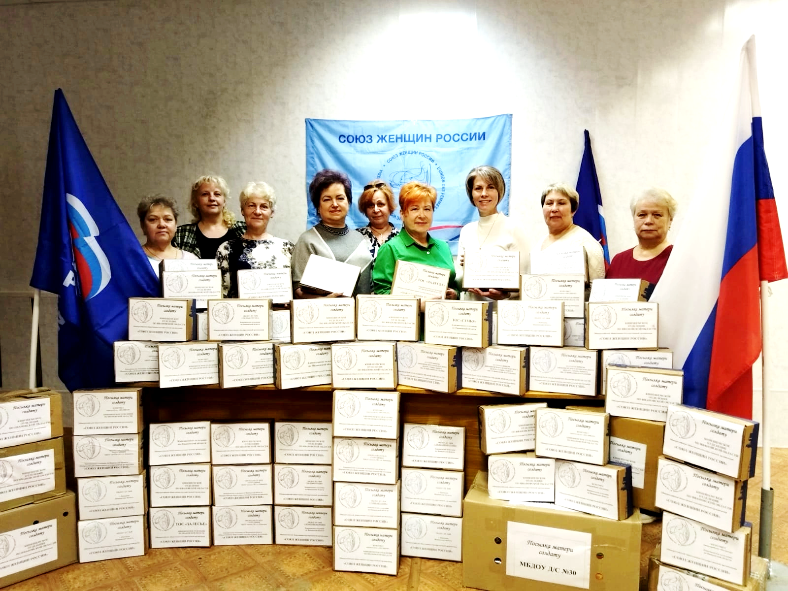 В Ивановском региональном отделении Союза женщин России завершилась акция «Посылка матери солдату», в рамках которой было собрано более 200 посылок, написаны сотни писем поддержки нашим защитникам.