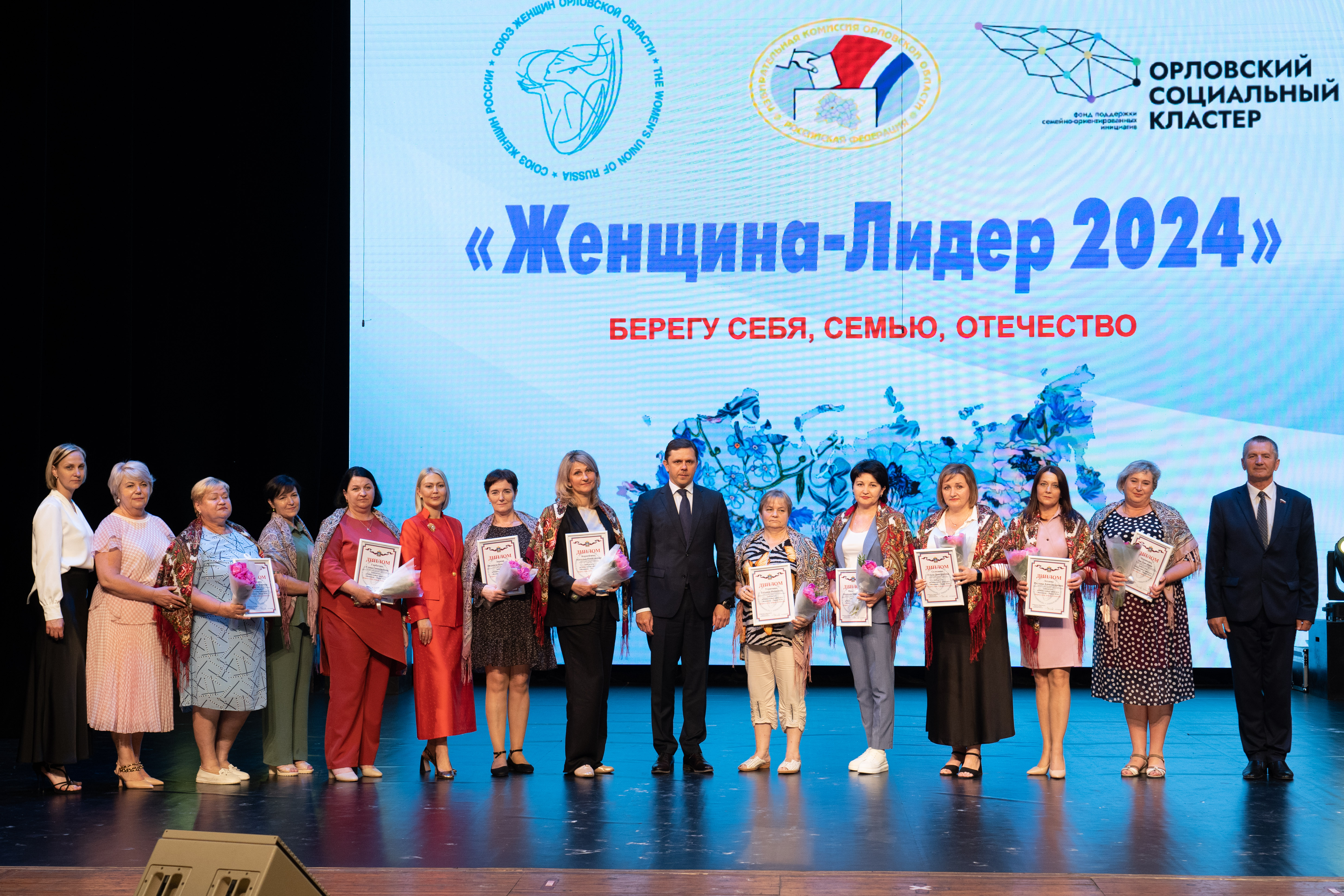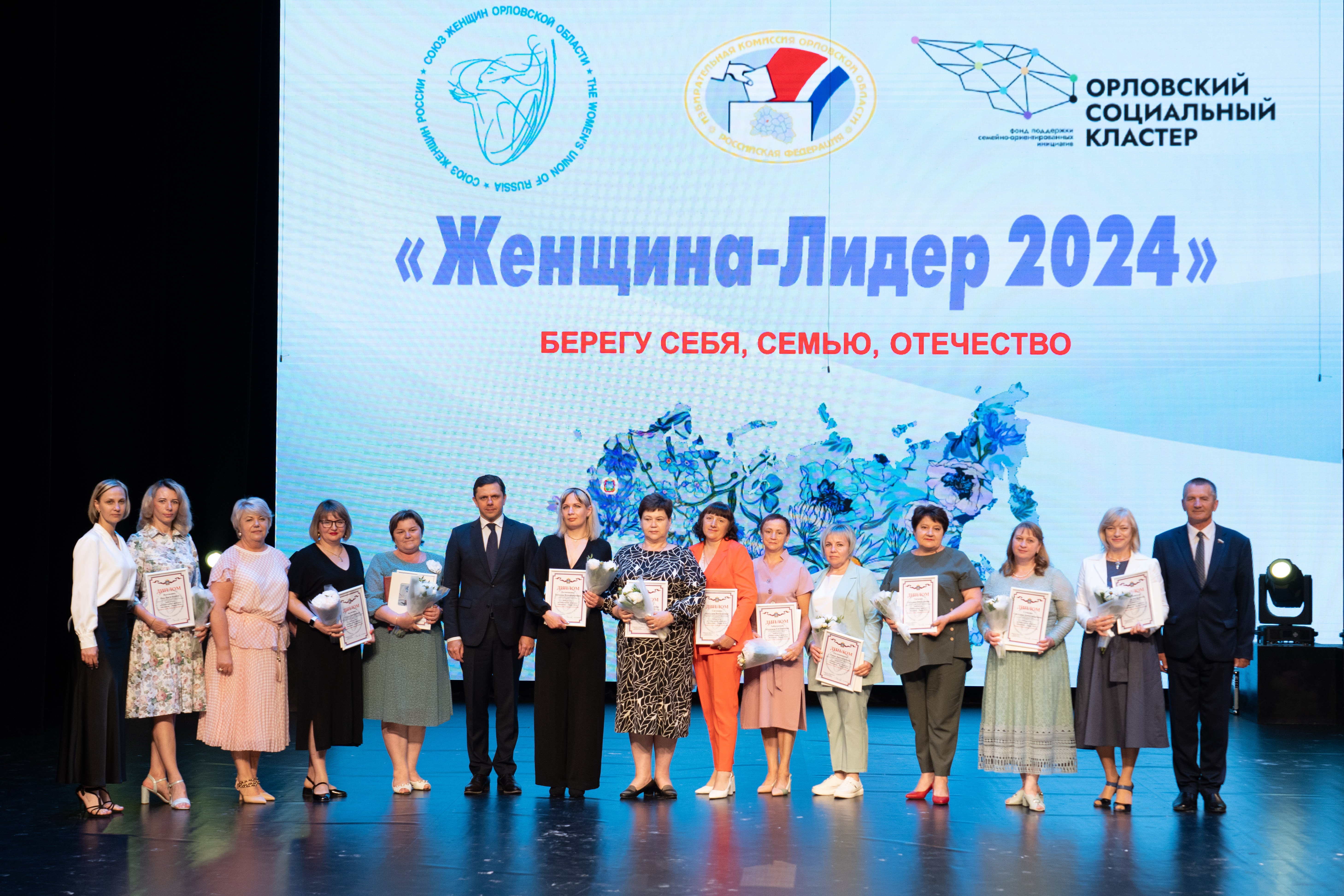 4 июня в концертном зале Орловского государственного института культуры состоялась торжественная церемония чествования победителей регионального конкурса «Женщина-лидер 2024» Берегу себя, семью, отечество». Конкурс проводится по инициативе Орловского регионального отделения Союза женщин России более 10 лет.