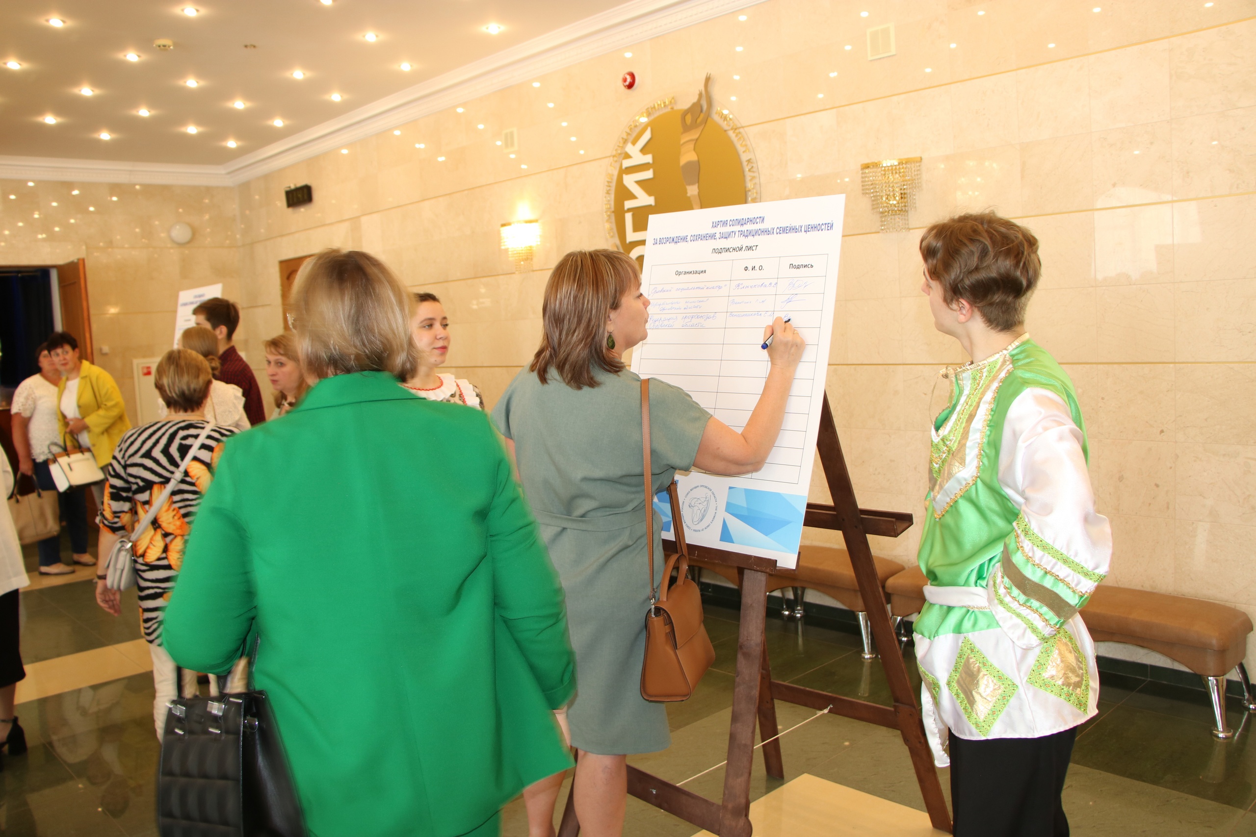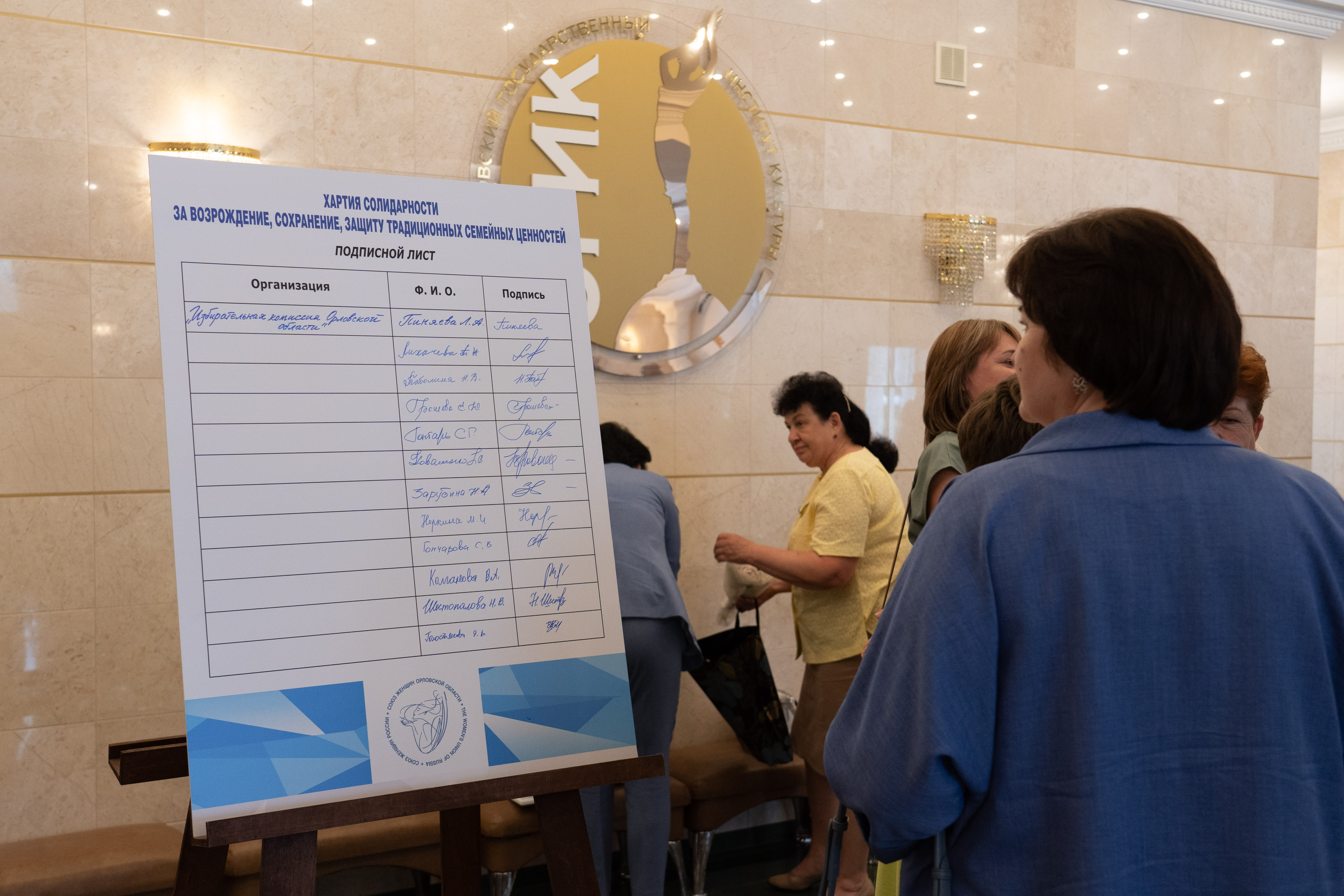 Перед началом праздничного мероприятия участники присоединились к подписанию инициированной Союзом женщин России Хартии солидарности за возрождение, сохранение, защиту традиционных семейных ценностей.