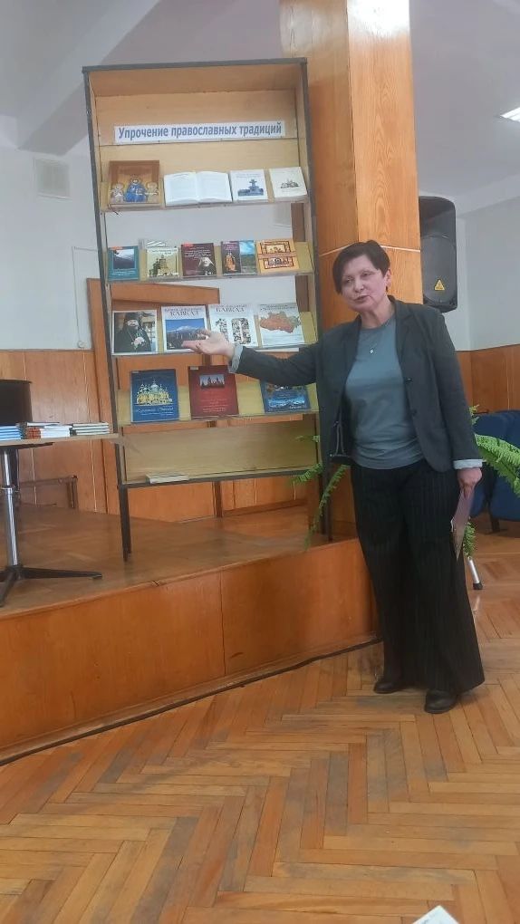 Ведущей вечера стала Лариса Сазанова — главный библиограф библиотеки, краевед, автор книг об истории Кавказских Минеральных Вод и член Совета женщин. В своем вступительном слове она представила гостям книжную выставку «Упрочение православных традиций», подготовленную к знаменательной дате.