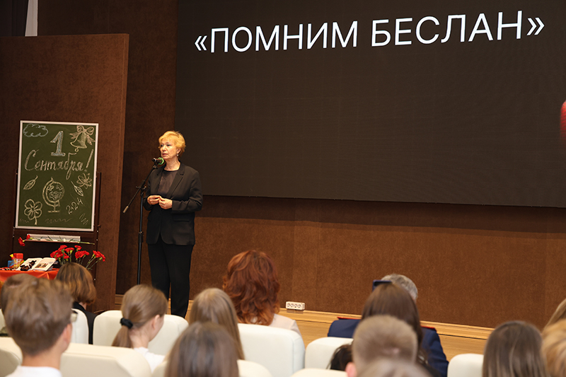 Наталья Николаевна Гришина, обратилась к присутствующим: «Террористический акт оставил неизгладимый след в истории России. Школа, став местом заточения, превратилась в арену нечеловеческой жестокости, где ученики, пришедшие за знаниями, учителя и родители оказались в плену у террористов. Беслан навсегда останется незаживающей раной в памяти народа. Мы надеемся, что сегодняшний день в борьбе с терроризмом и сегодняшняя встреча сделает нас более чуткими и ответственными к тому что нас окружает. Мы будем с большим участием относиться друг к другу, к своим родителям, учителям и к тому, какой сегодня бой держат наши воины в зоне специальной военной операции, стремясь защитить нас от ужасов встречи с фашизмом и терроризмом».