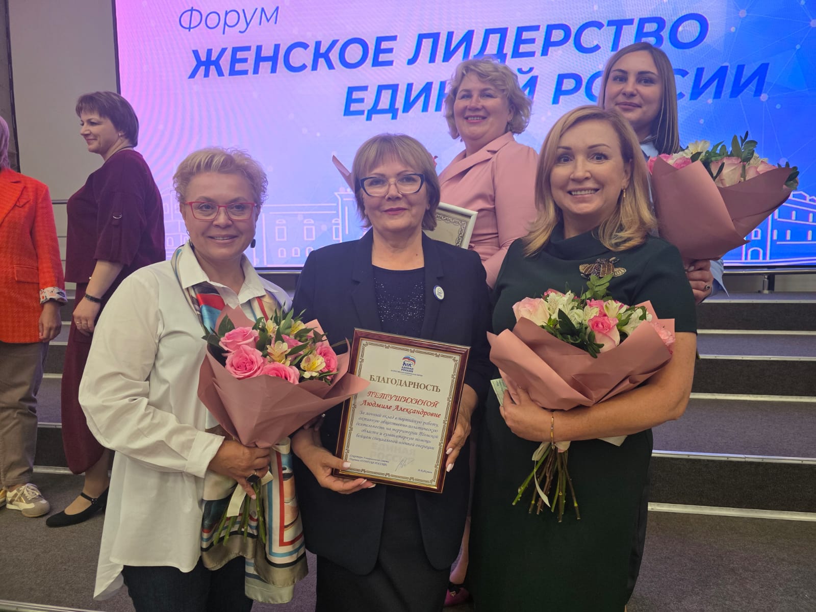 В рамках Форума состоялось награждение активных женщин. Председатель Томского РО СЖР Людмила Петушихина награждена Благодарностью Секретаря Генерального совета партии «Единая Россия» Владимира Владимировича Якушева «За личный вклад в общественно-политическую деятельность на территории Томской области и гуманитарную помощь бойцам специальной военной операции».