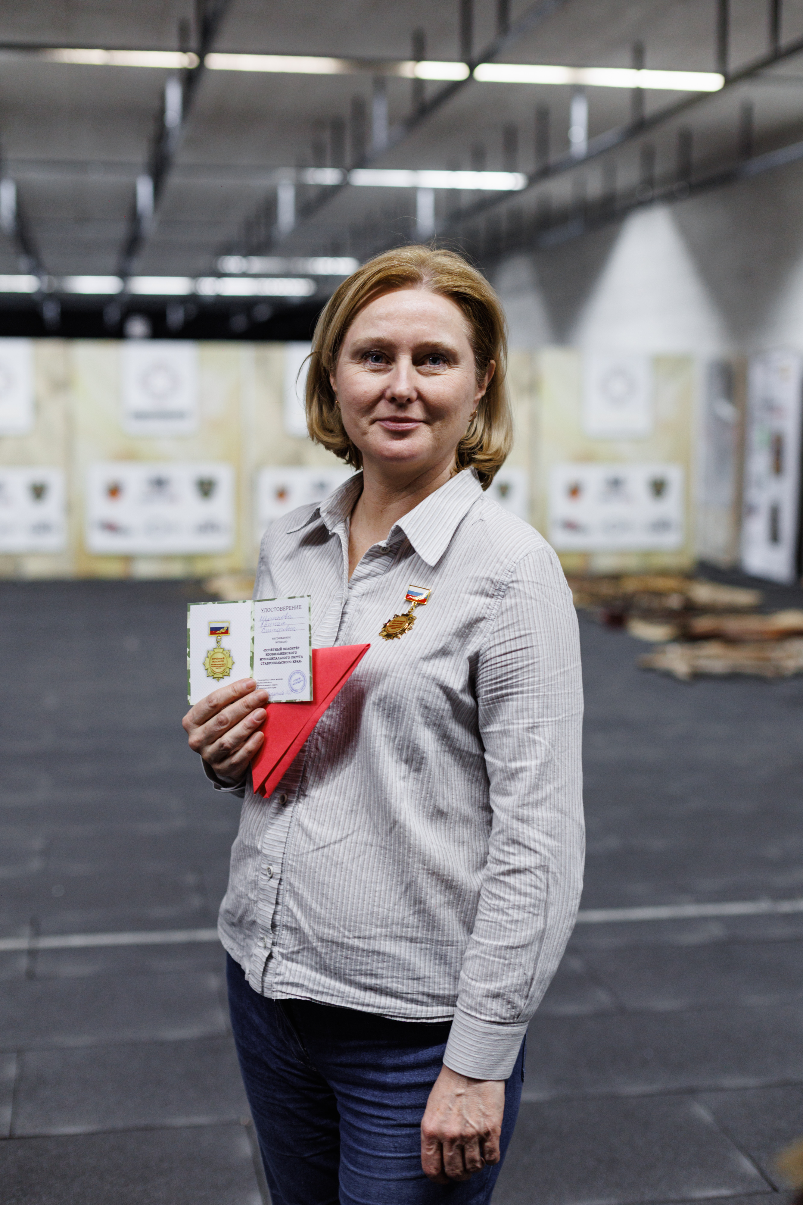 В рамках выставки председатель Совета женщин Ирина Торгунова наградила добровольных помощников СВО медалью «Почетный волонтер Изобильненского муниципального округа».