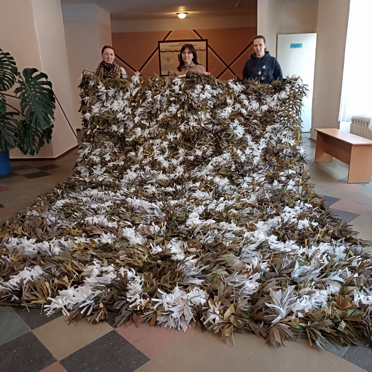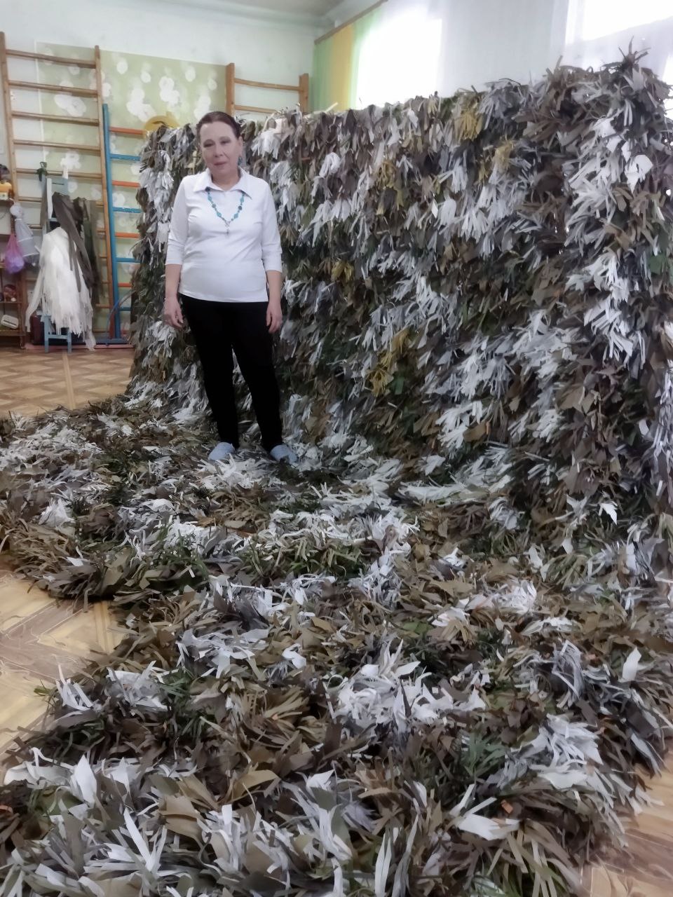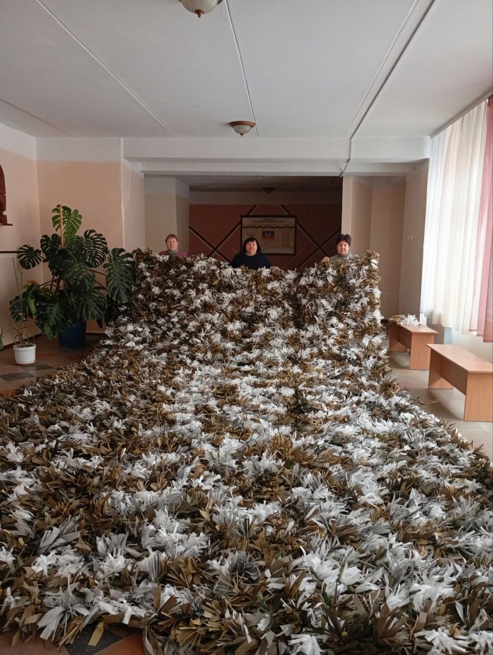В городах Горловка, Дебальцево и Докучаевск активистки местных женсоветов, вместе с юнармейцами, активистами "Движения Первых" и "Молодой Республики" и присоединившимися к ним людьми с ограниченными возможностями здоровья, плетут маскировочные сети и нашлемники. За 2025 год их умелыми руками было изготовлено около 350 сетей и 180 нашлемников.