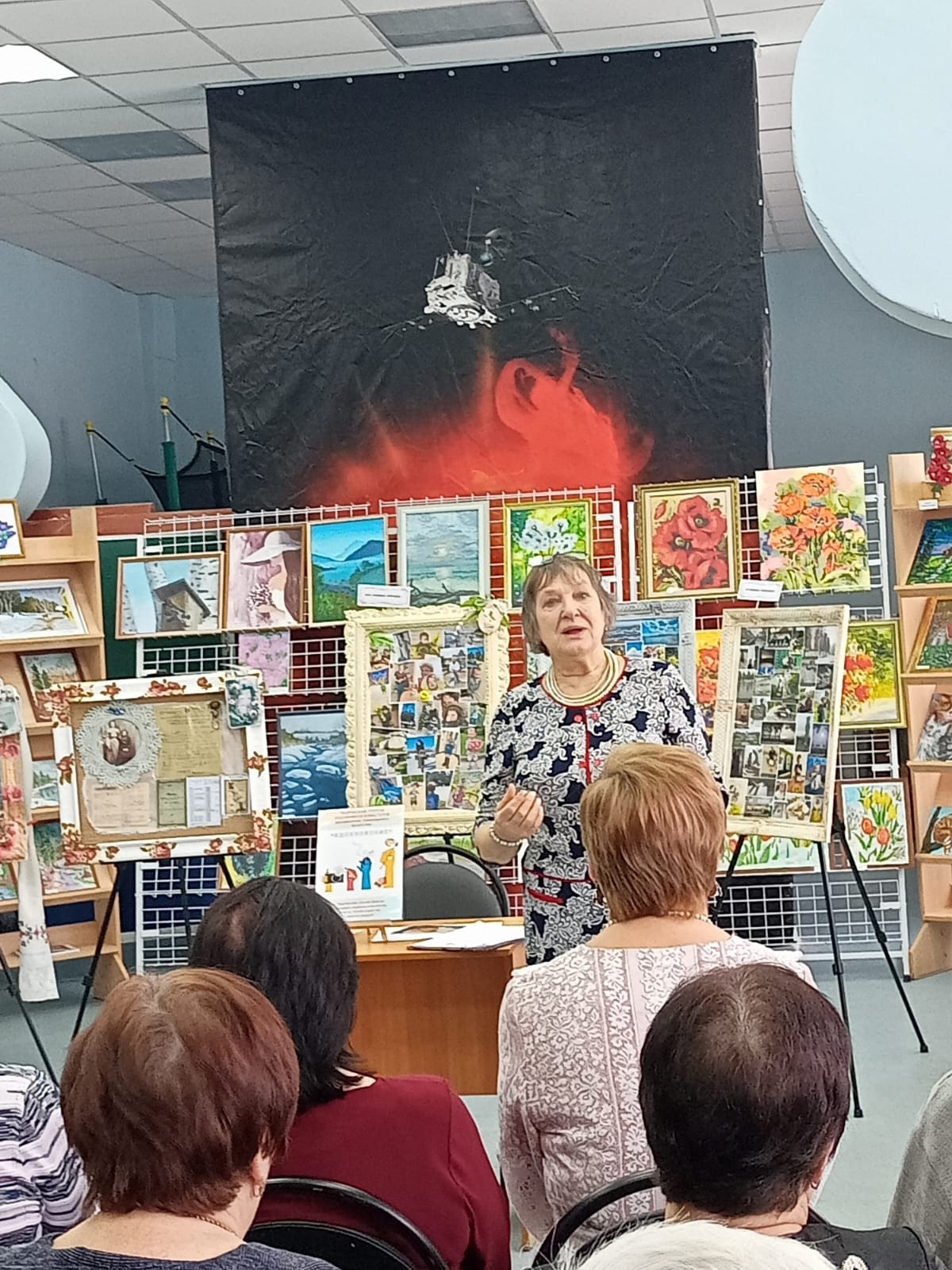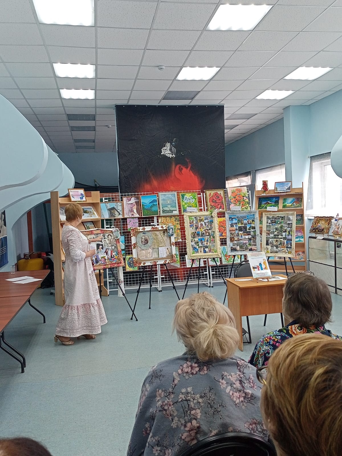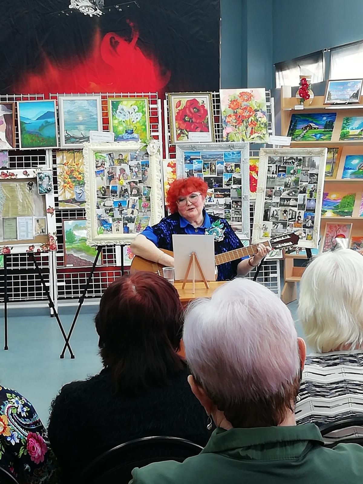 Гости мероприятия могли не только полюбоваться на картины, но и послушать стихи собственного сочинения Натальи Шлаевой, Светланы Смирновой, песни под гитару в исполнении Елены Леонидовой. Солисты вокального ансамбля «Камертон» Надежда Перевозчикова и Михаил Спиридонов подарили присутствующим прекрасные музыкальные произведения.