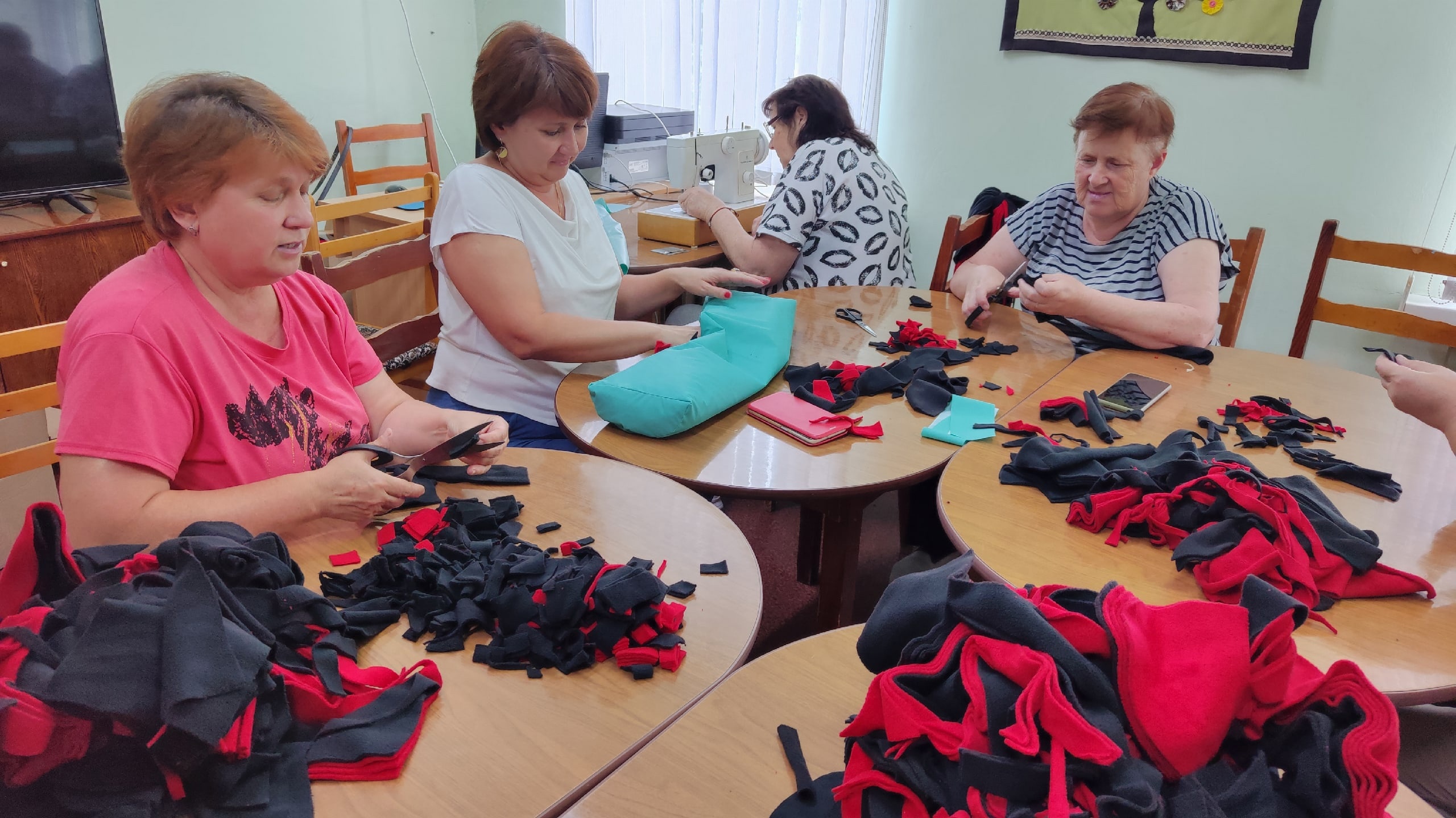 Члены женсовета Кузоватовского района вместе с ветеранами женского движения - получателями социальных услуг Центра активного долголетия "Вера" на базе социально-реабилитационного центра «Парус надежды» шьют специальные подушки для пациентов госпиталей.