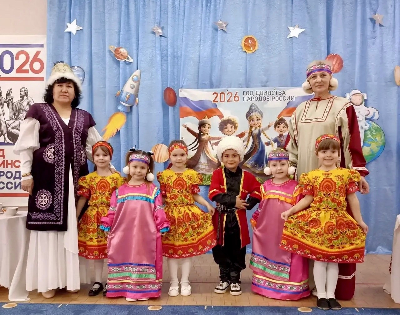 А дальше началось особое действо. В этом Анне Уразовне помогали Маргарита Солоджук и Любовь Данилова. Дети примеряли наряды, которые бережно хранят исторические и культурные корни целых народов. Примиряя русский, казахский, мордовский, азербайджанский костюмы, малыши чувствовали себя частью великой страны.