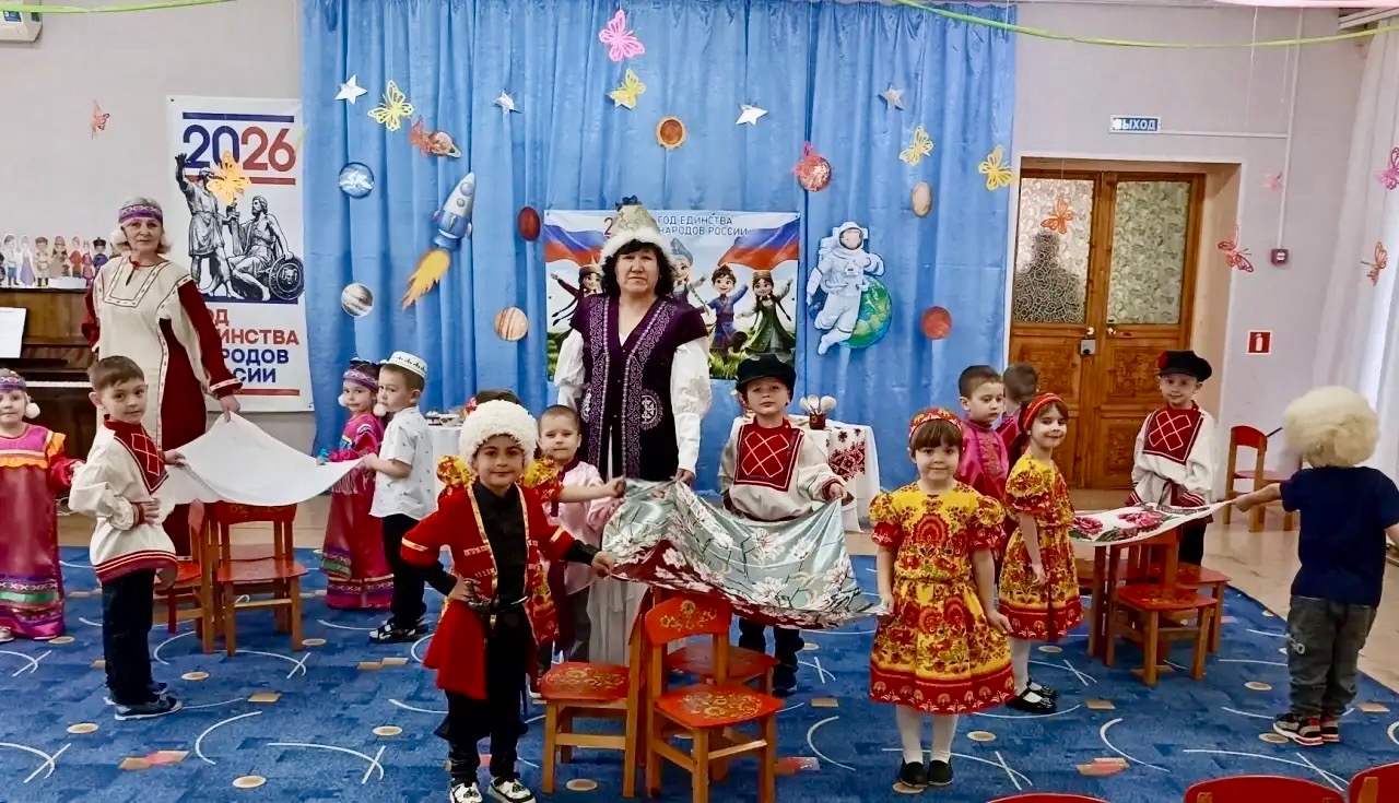 Анна Ермакова, воспитатель детского сада поселка Пробуждение, наша союзница, рассказала дошколятам о нашей многонациональной стране. Ребятишки узнали, что Энгельсский район и их родной поселок в частности — это большая и дружная семья, где люди разных национальностей живут в мире и согласии, что каждый народ приносит в общую "копилку" свои добрые традиции, культуру и духовные ценности.