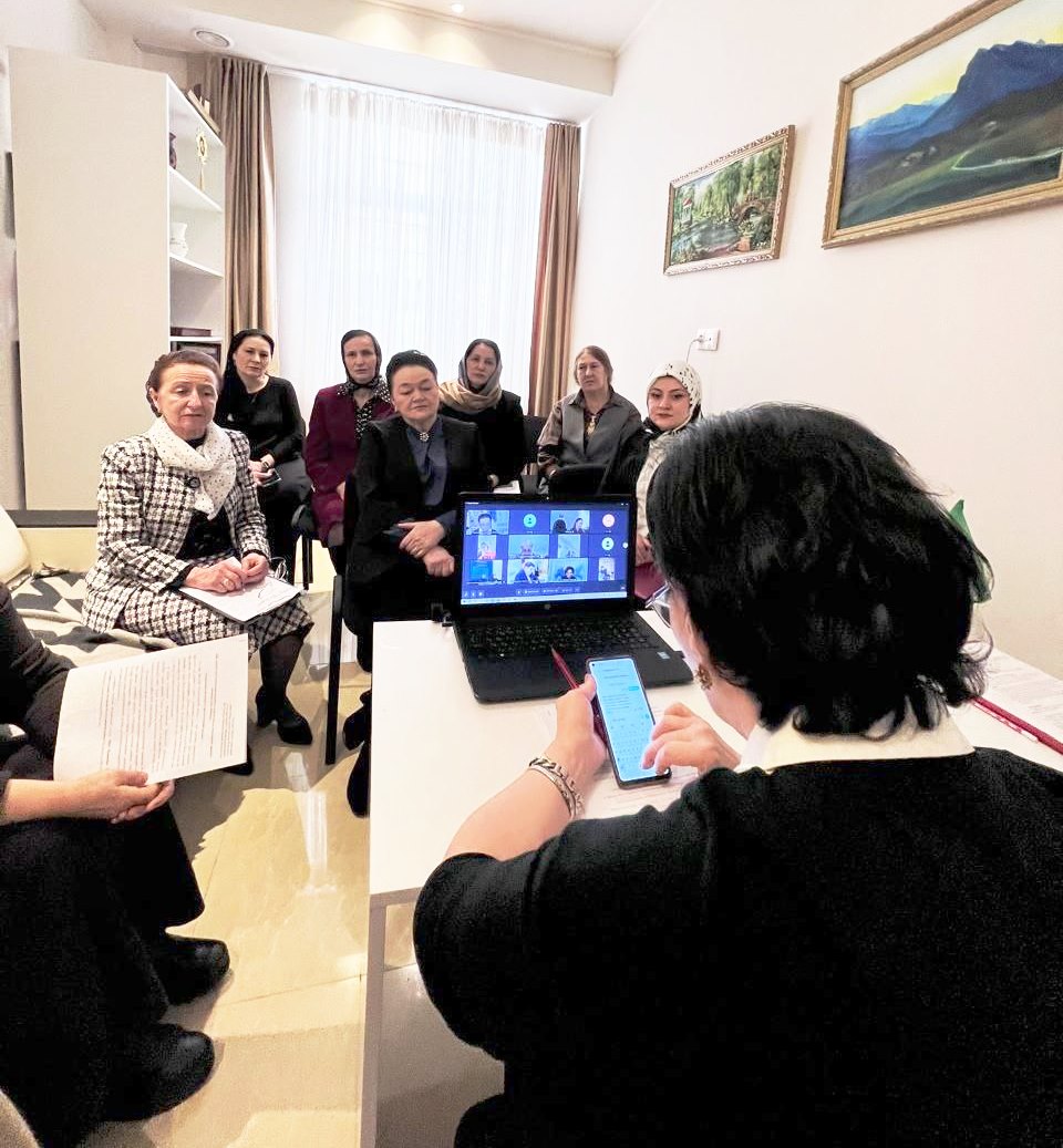 Сацита Хамирзоевна Уциева, председатель Чеченского РО СЖР рассказала о том, как развиваются партнерские отношения и коммуникации женсоветов в рамках программы мероприятий «85 лет борьбы и созидания».